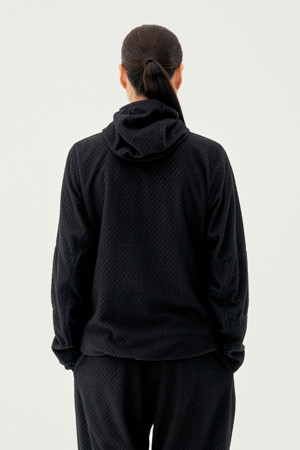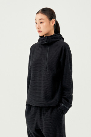 - 긴 머리 착용자를 위한 후드 뒤 슬릿 디테일