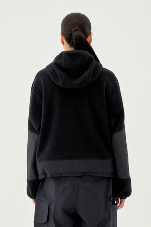 - 가볍고 보온성 뛰어난 플리스 소재와 하이넥 후드 패턴 적용