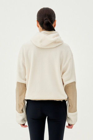 - 가볍고 보온성 뛰어난 플리스 소재와 하이넥 후드 패턴 적용