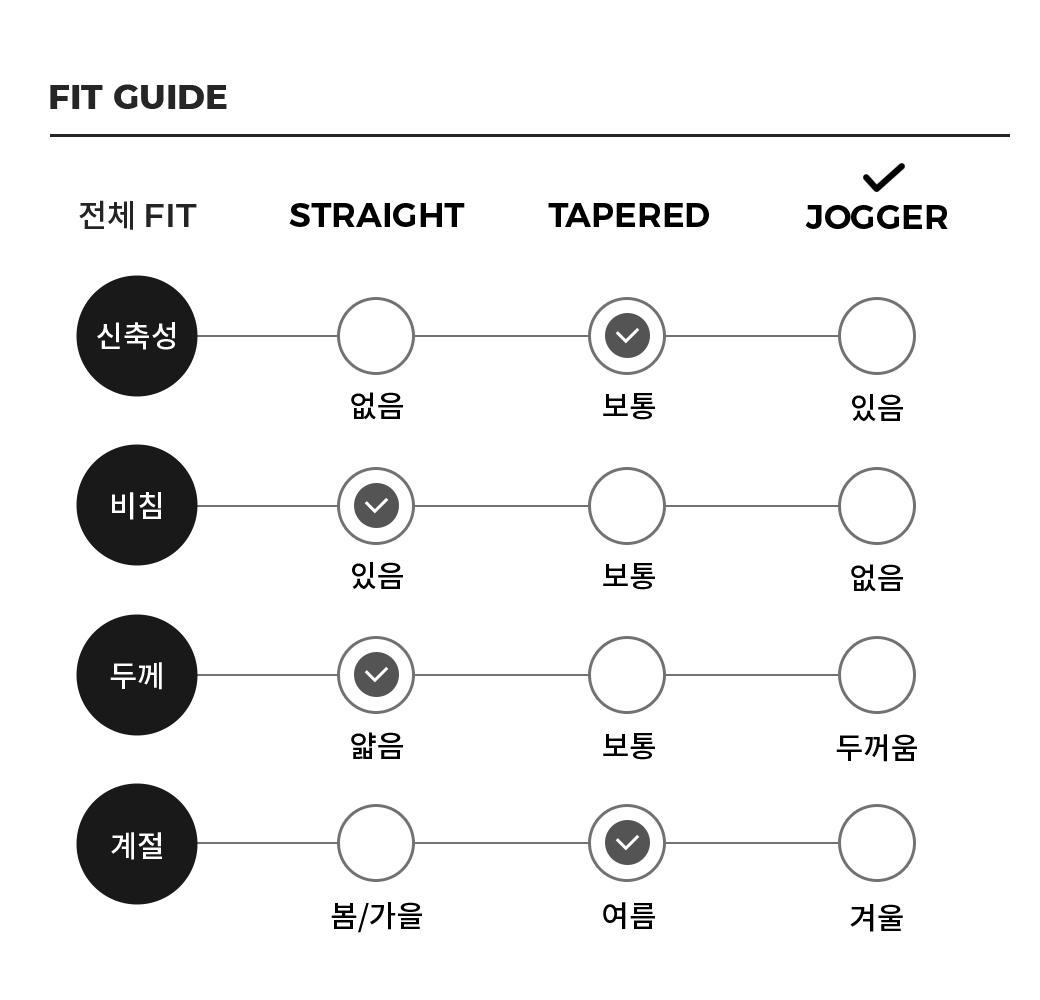 - 밑단은 여유있는 조거 형태로 편안한 실루엣을 연출합니다.