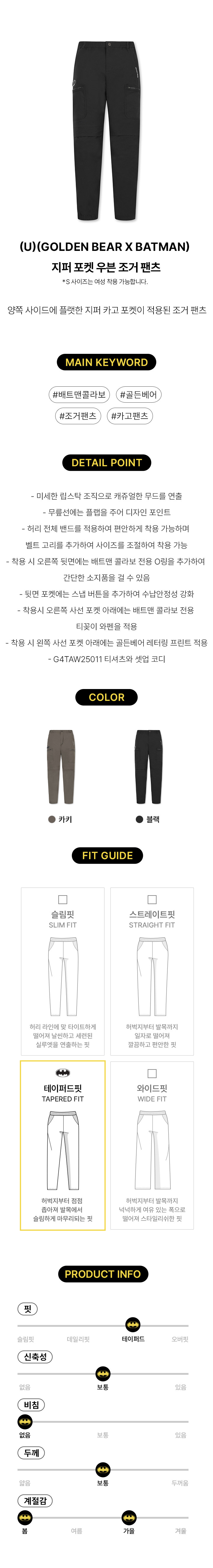 (U)(GOLDEN BEAR X BATMAN) 지퍼 포켓 우븐 조거 팬츠