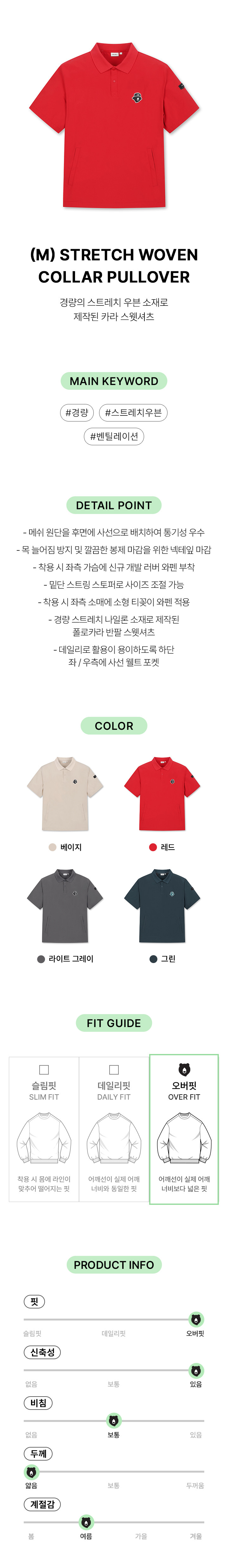 | 색상 | 베이지, 그린, 라이트 그레이, 레드 |