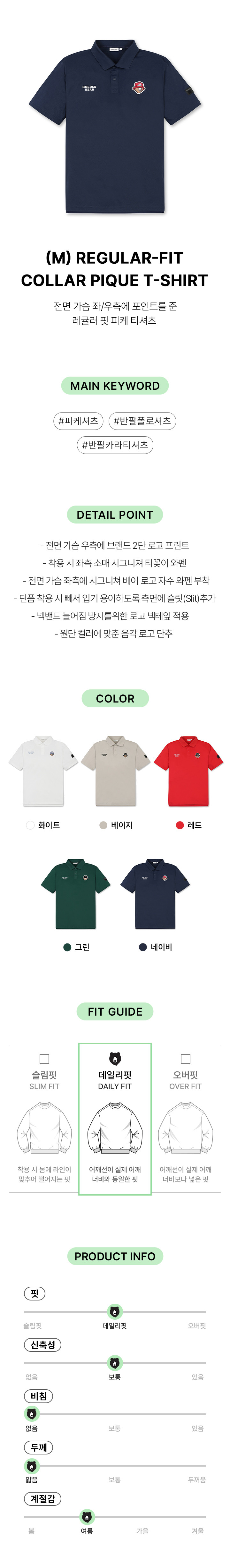 | 색상 | 베이지, 네이비, 레드, 그린, 화이트 |