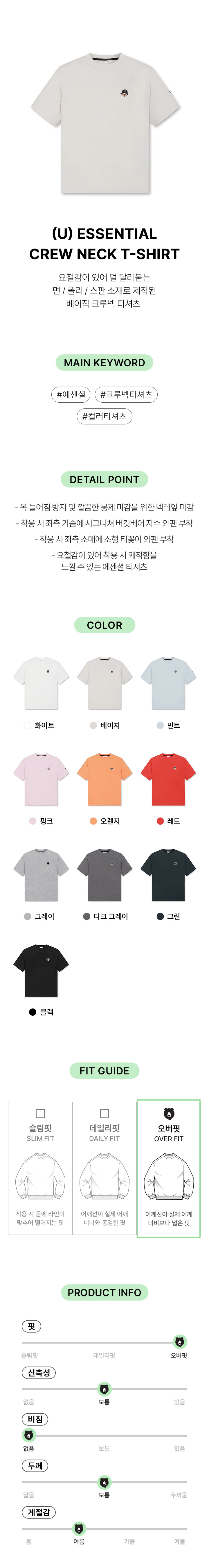 | 색상 | 다크 그레이, 민트, 오렌지, 화이트, 베이지, 블랙, 그린, 그레이, 레드, 핑크 |
