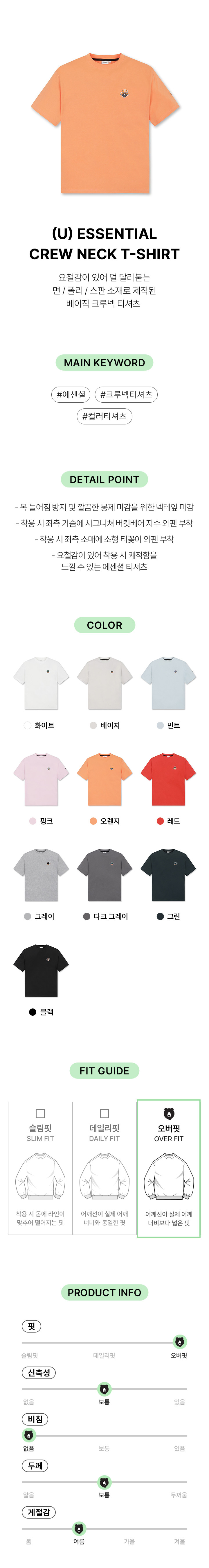 | 색상 | 다크 그레이, 민트, 오렌지, 화이트, 베이지, 블랙, 그린, 그레이, 레드, 핑크 |