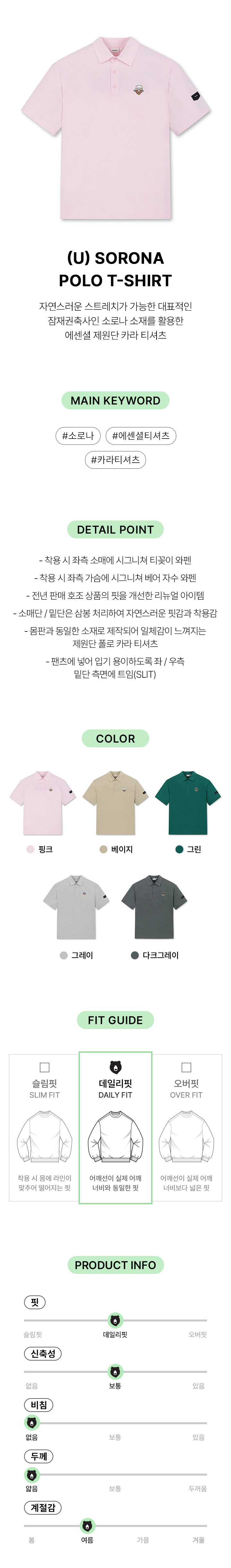 | 색상 | 다크 그레이, 베이지, 그린, 핑크, 그레이 |