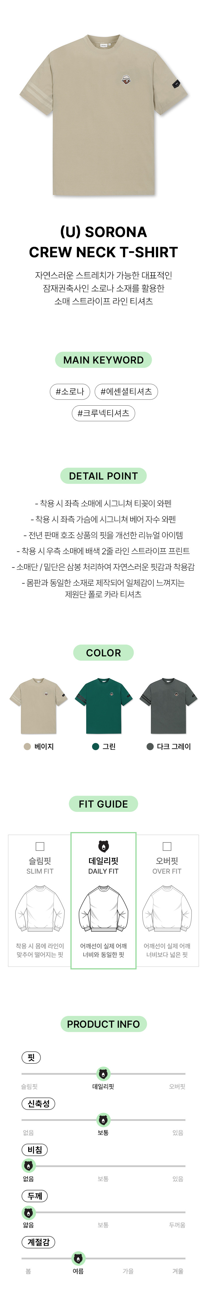 | 색상 | 다크 그레이, 베이지, 그린 |