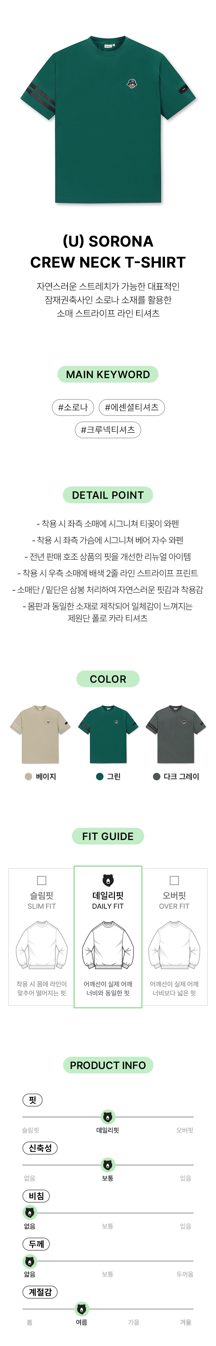 | 색상 | 다크 그레이, 베이지, 그린 |