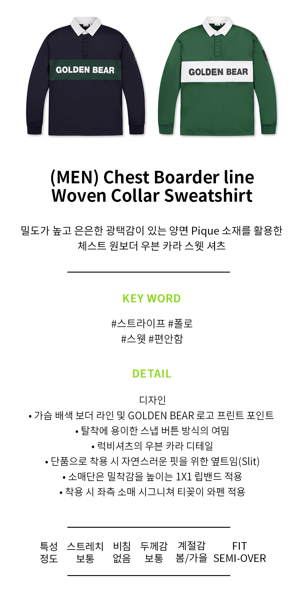 (MEN) Chest Boarder line Woven Collar Sweatshirt(Navy)