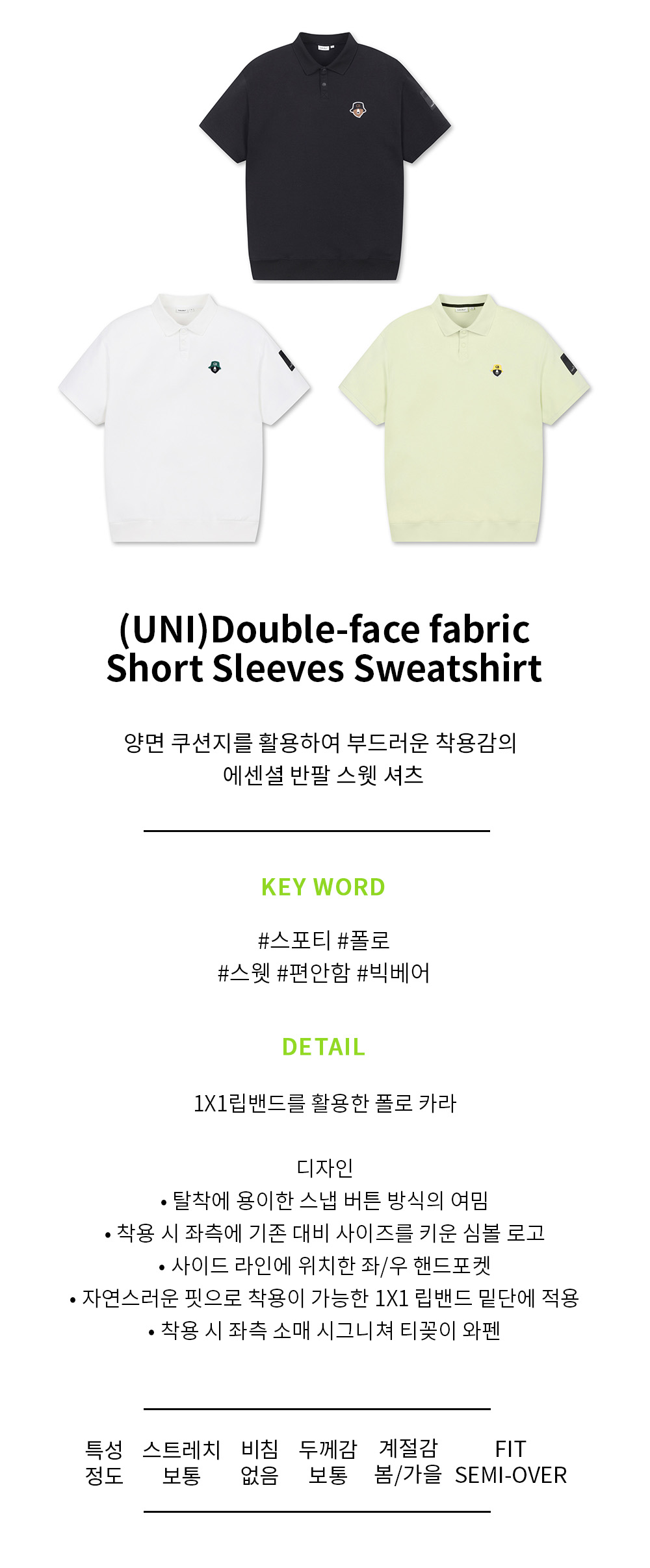 (UNI) Double-face fabric Short Sleeves Sweatshirt(Black)