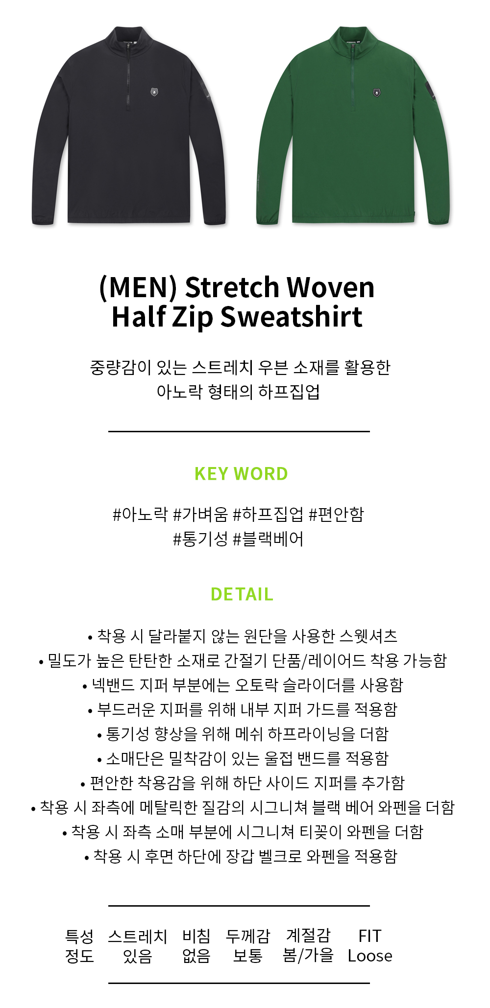 (MEN) Stretch Woven Half Zip Sweatshirt(Green)