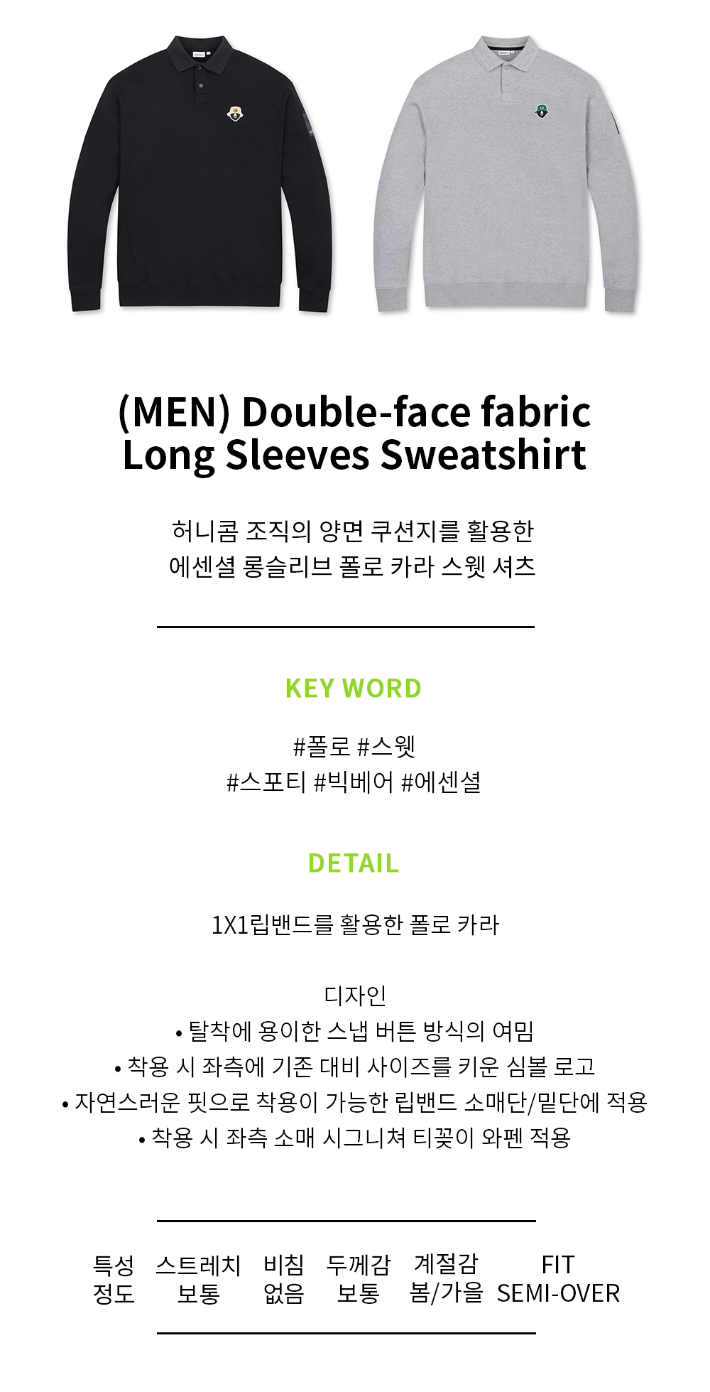 (MEN) Double-face fabric Long Sleeves Sweatshirt(Black)