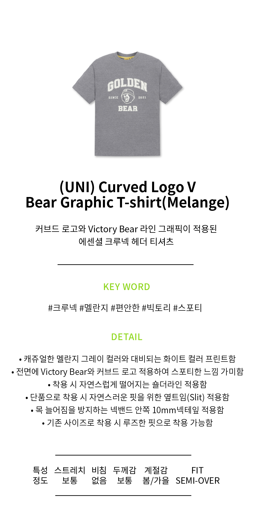 (UNI) Curved Logo V Bear Graphic T-shirt(Melange)
