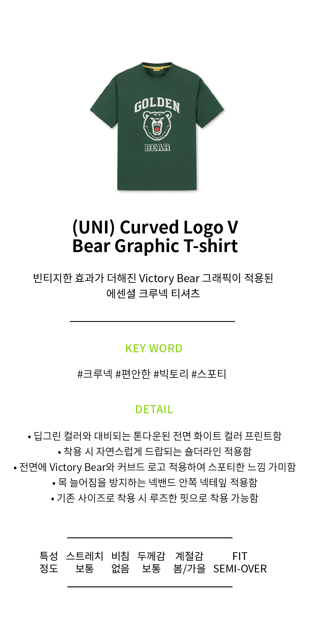 (UNI) Curved Logo V Bear Graphic T-shirt(Green)