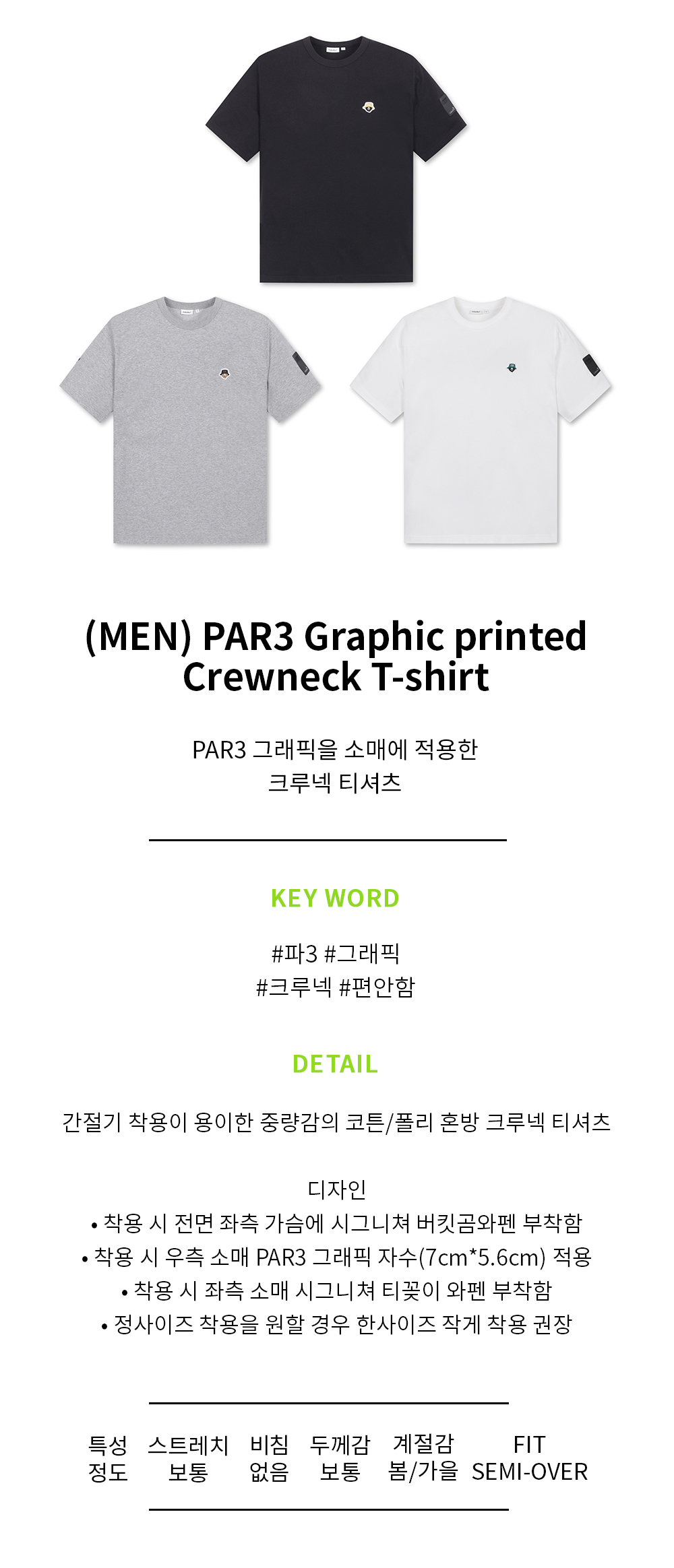 (MEN) PAR3 Graphic printed Crewneck T-shirt(Black)