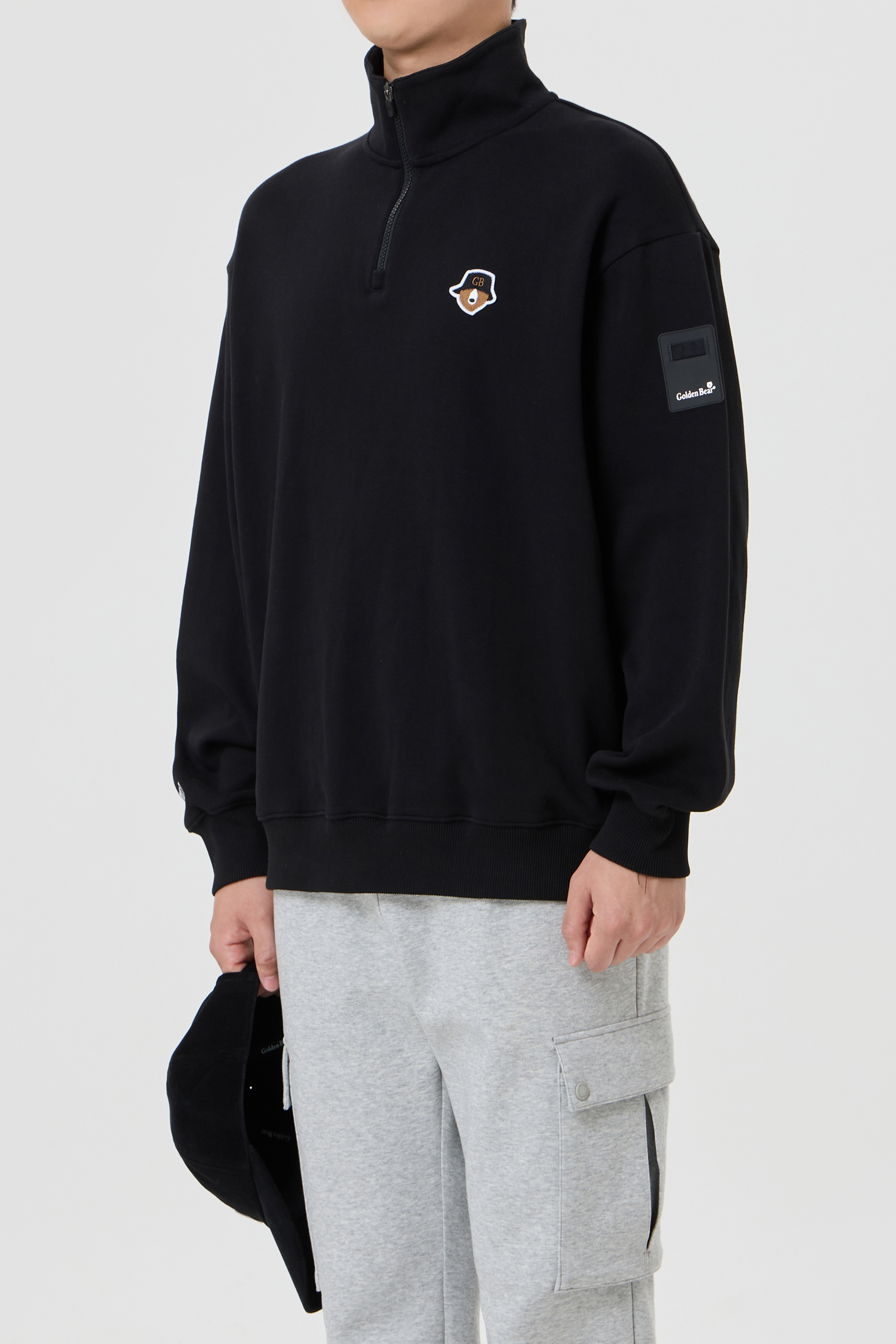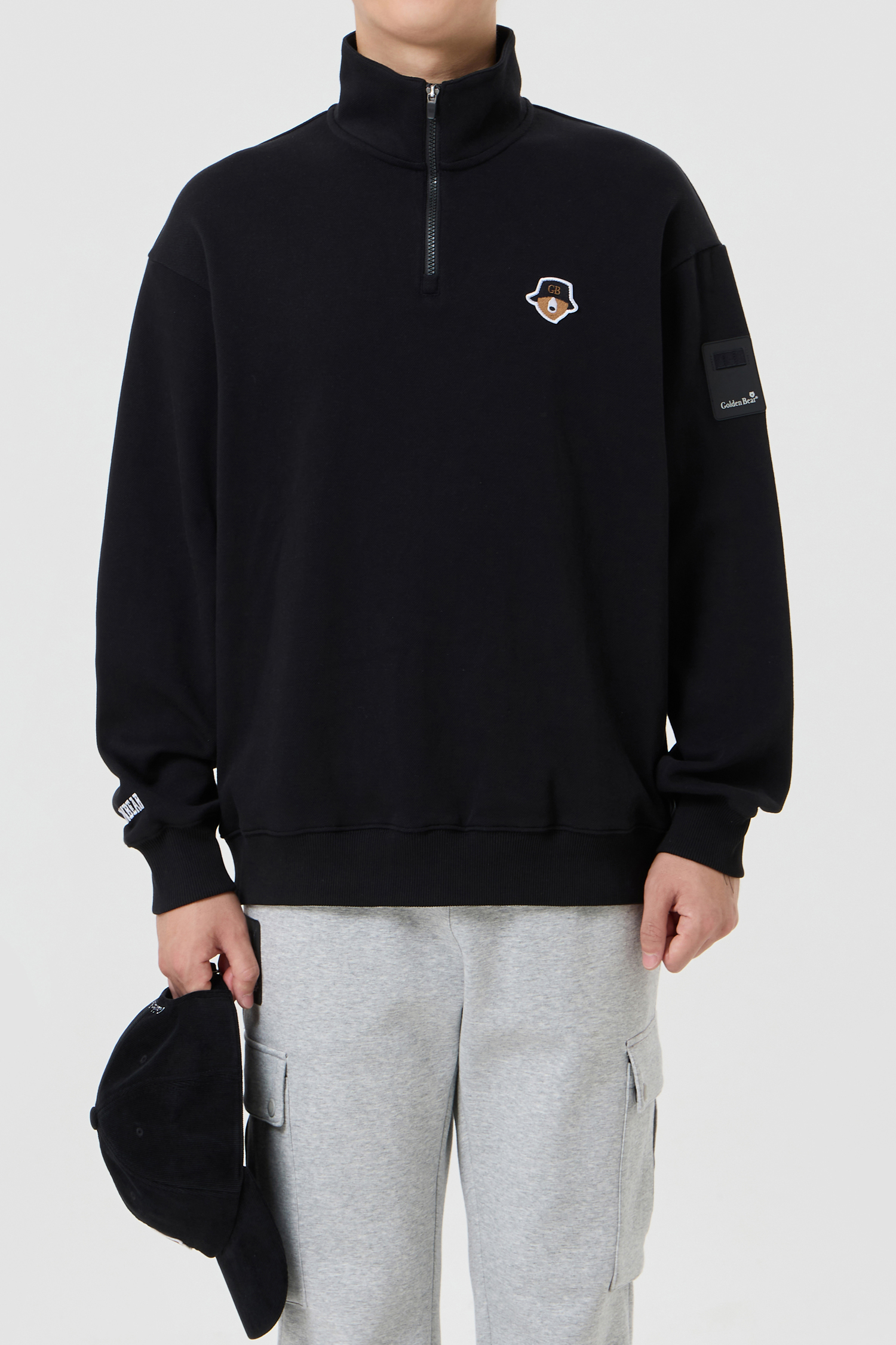 (UNI) Half Zip-up Double-face Pique Sweatshirt(Black)