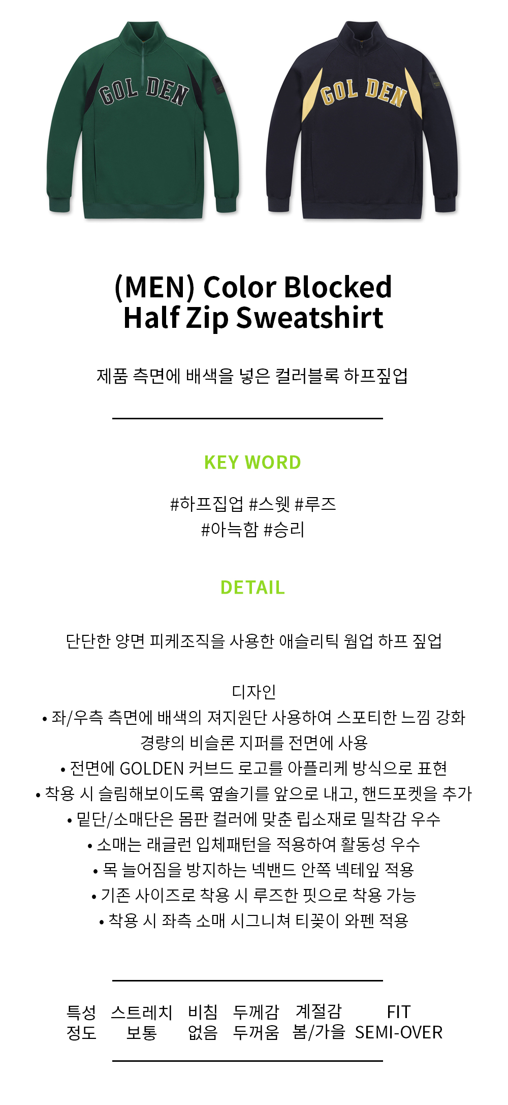 (MEN) Color Blocked Half Zip Sweatshirt(Navy)