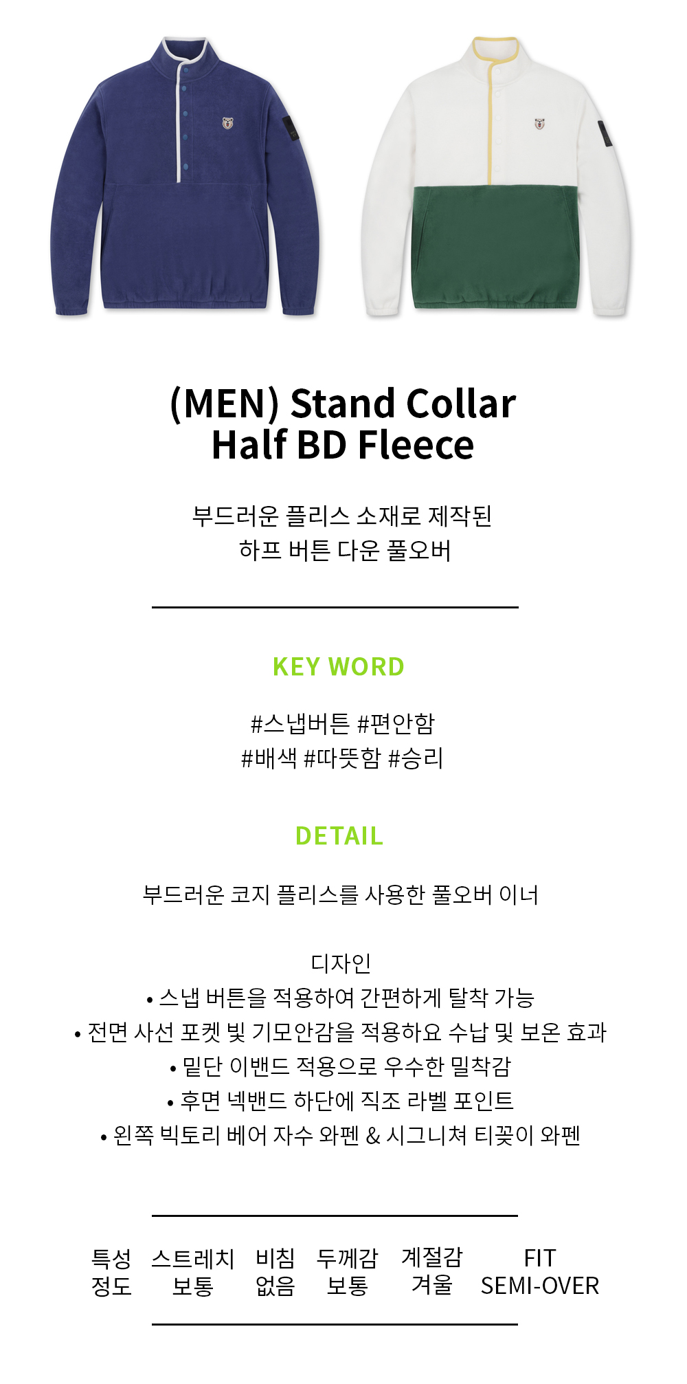 (MEN) Stand Collar Half BD Fleece(Navy)