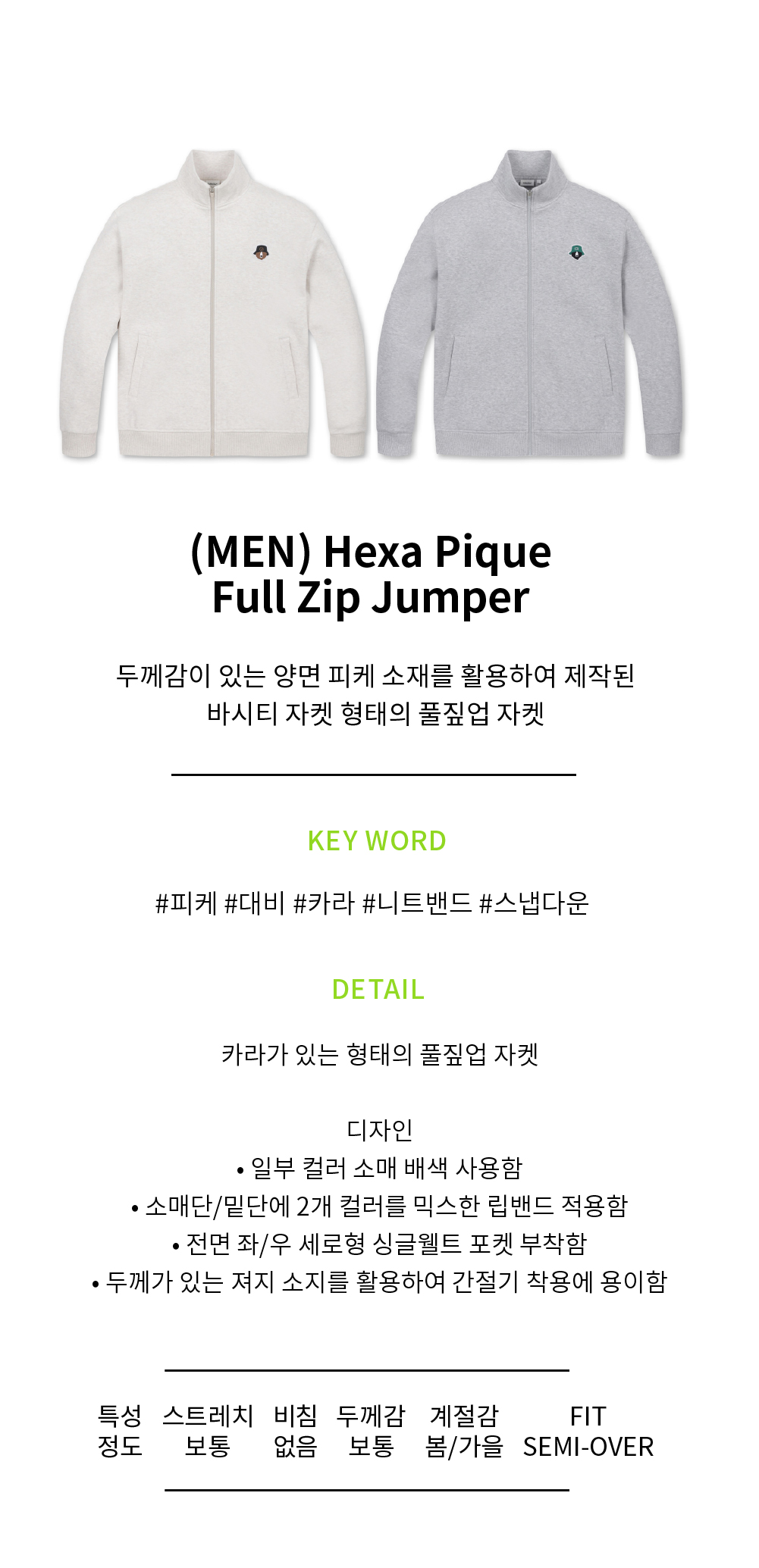(MEN) Hexa Pique Full Zip Jumper(Grey)