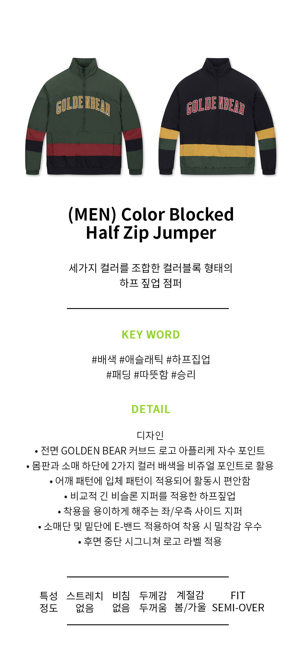(MEN) Color Blocked Half Zip Jumper(Black)