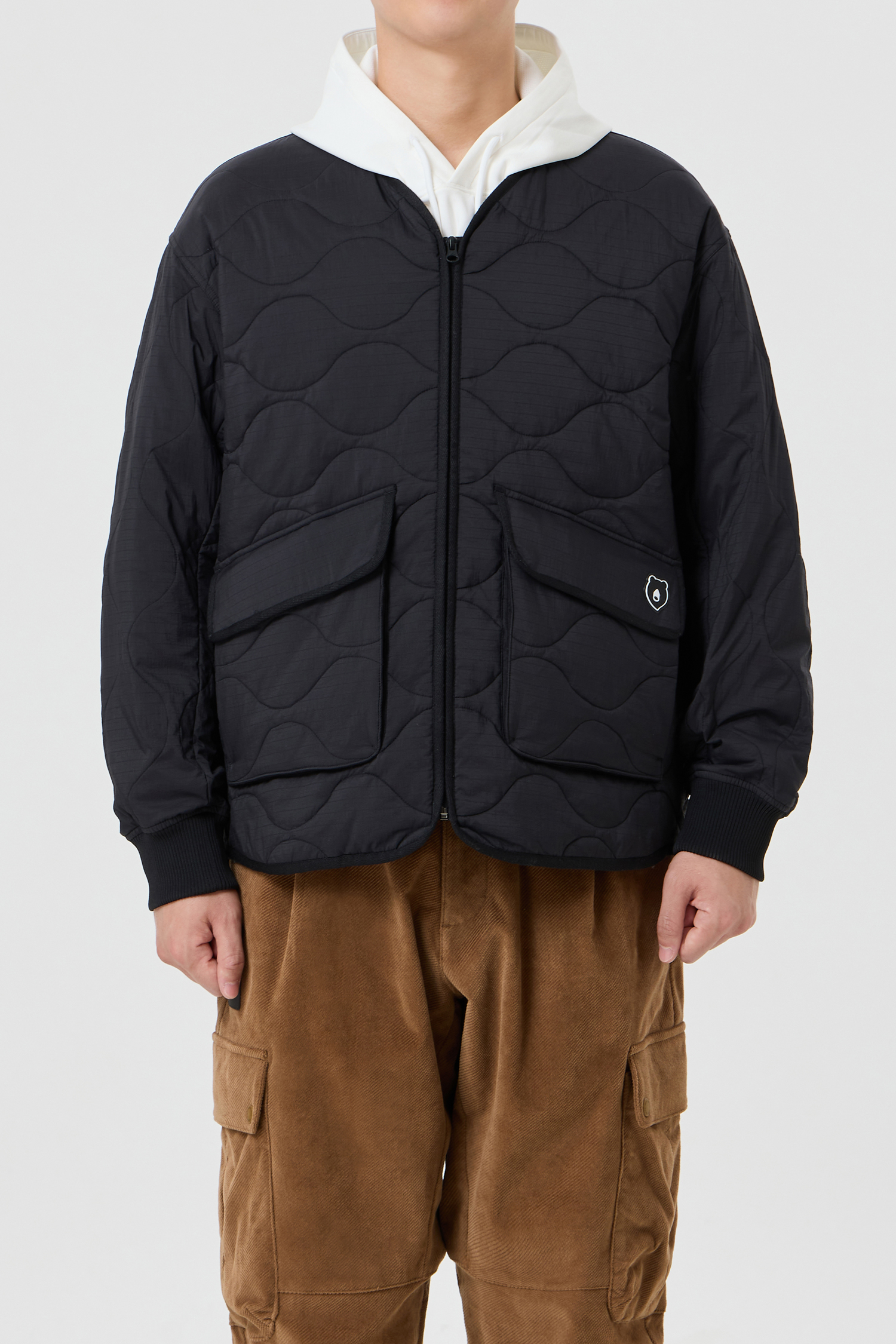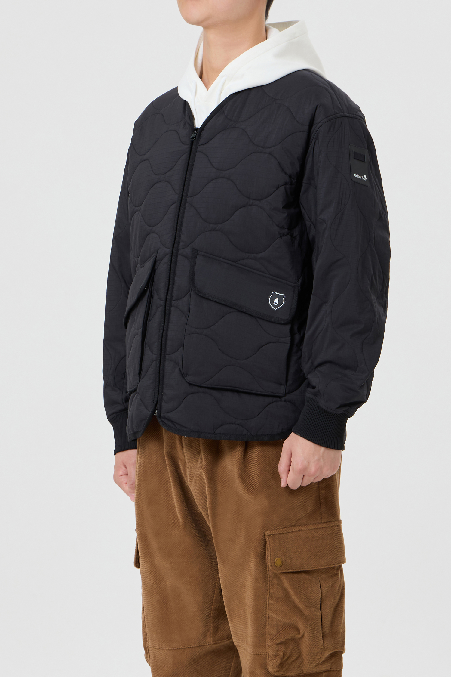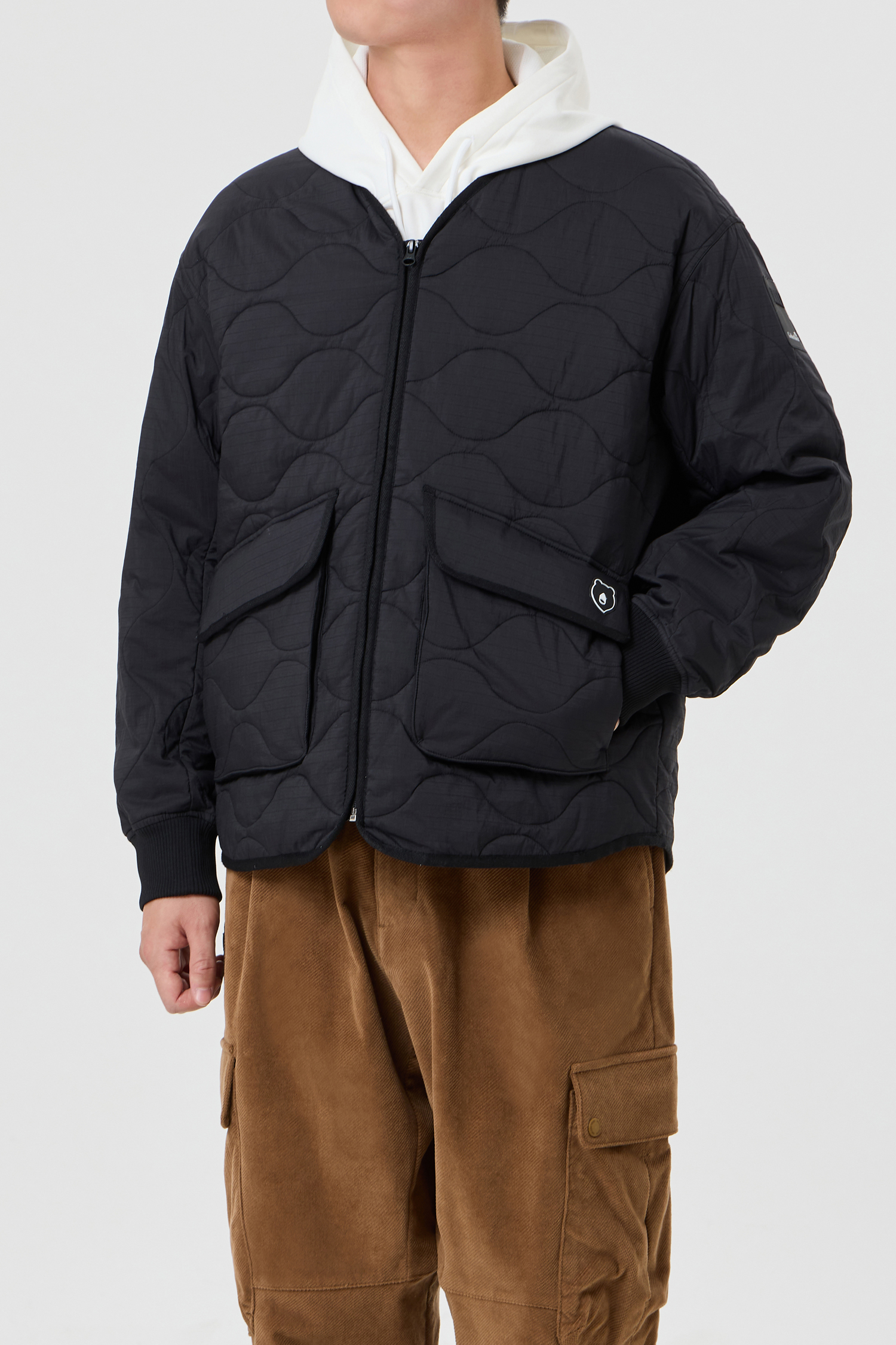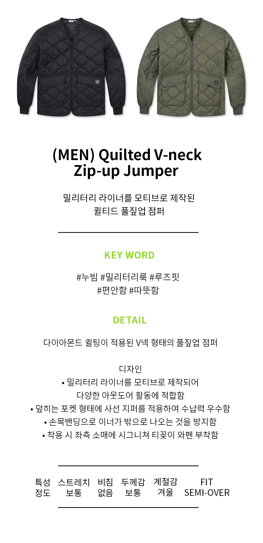 (MEN) Quilted V-neck Zip-up Jumper(Black)