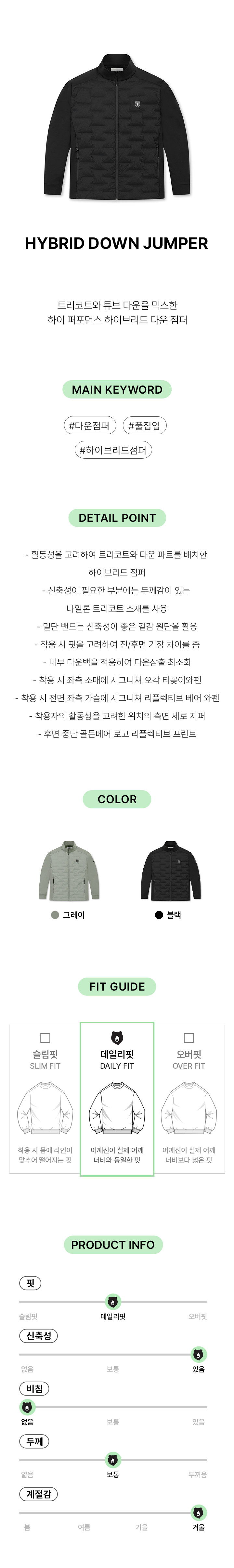 | 소재 | 겉감: 나일론 85% 폴리우레탄 15% 배색: 폴리에스터 100% 충전재: 오리솜털 80% 오리깃털 20% (심지,보강재,상표,무늬,레이스,밴드 등 제외) |