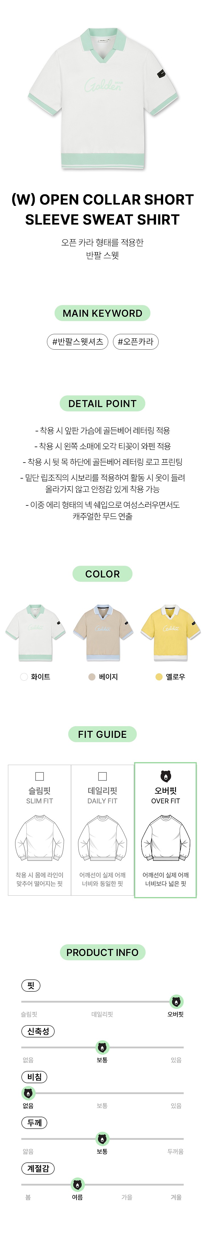 (W) Open Collar Short Sleeve Sweat Shirt Set Up