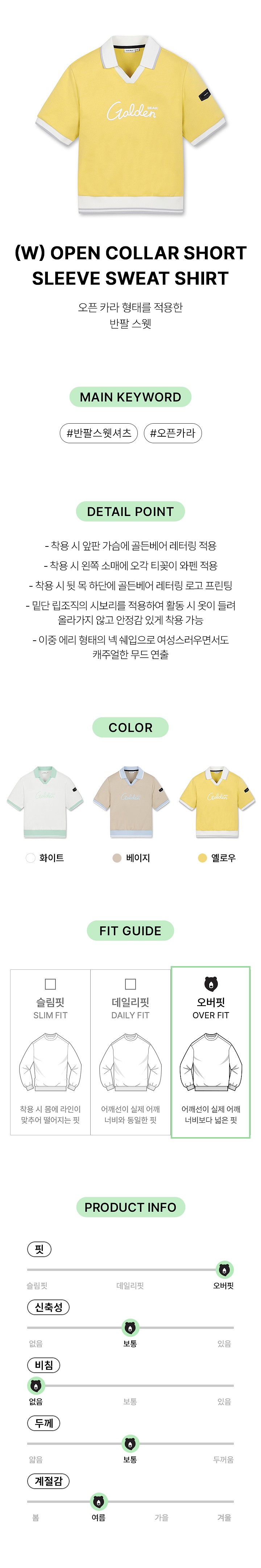 (W) Open Collar Short Sleeve Sweat Shirt Set Up