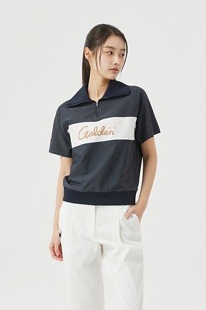(W) Chest Boarder Half Zip-up T-shirt