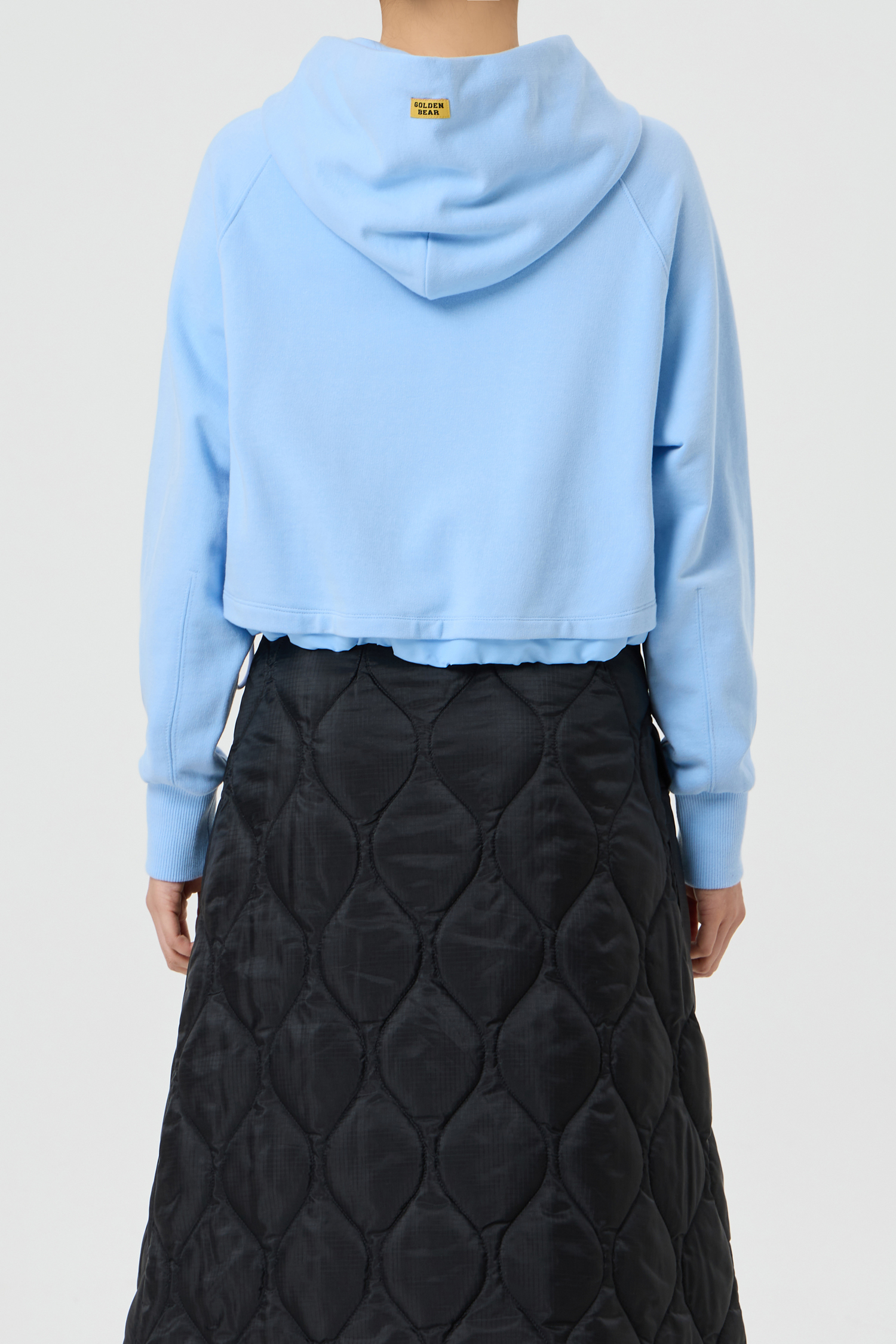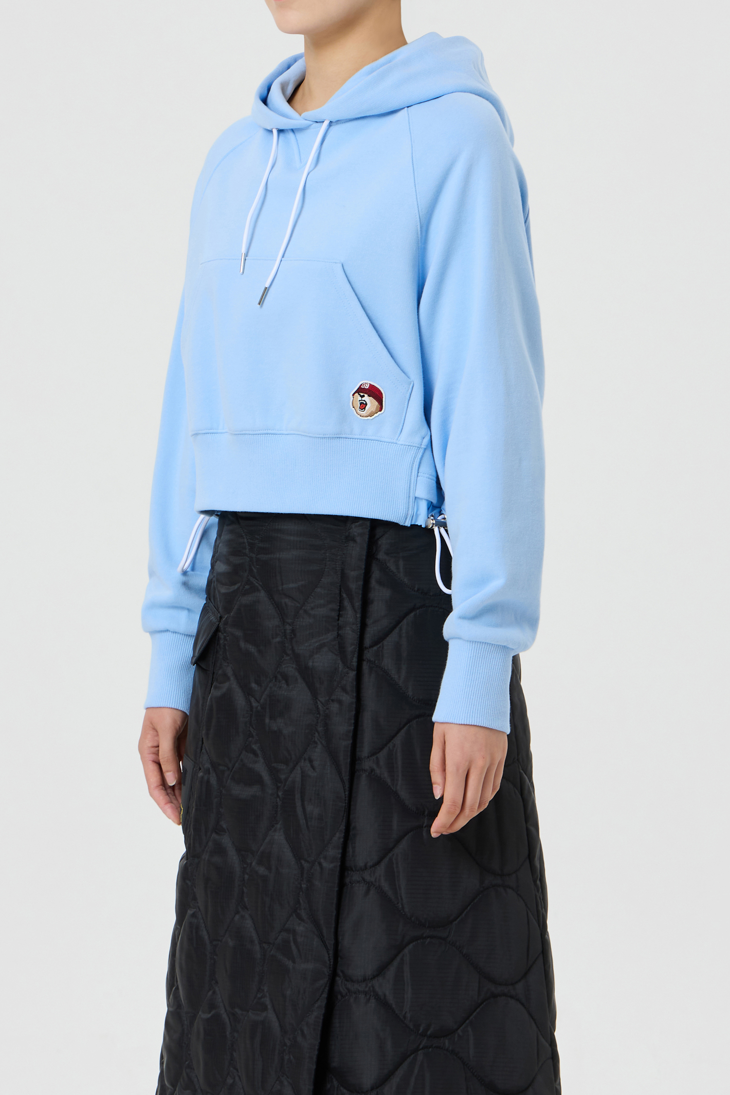 (WOMEN) Woven Hybrid Cropped Hoody(Blue)