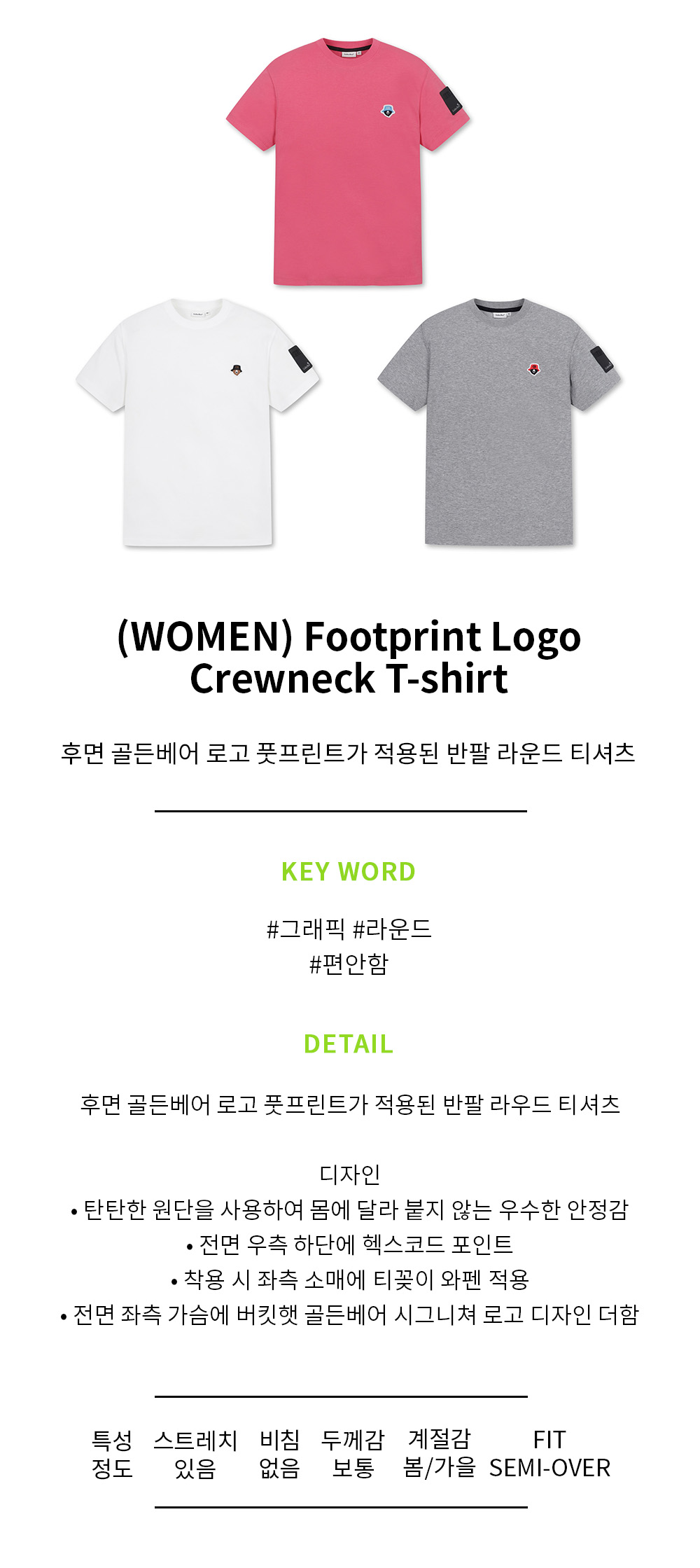 (WOMEN) Footprint Logo Crewneck T-shirt(Pink)