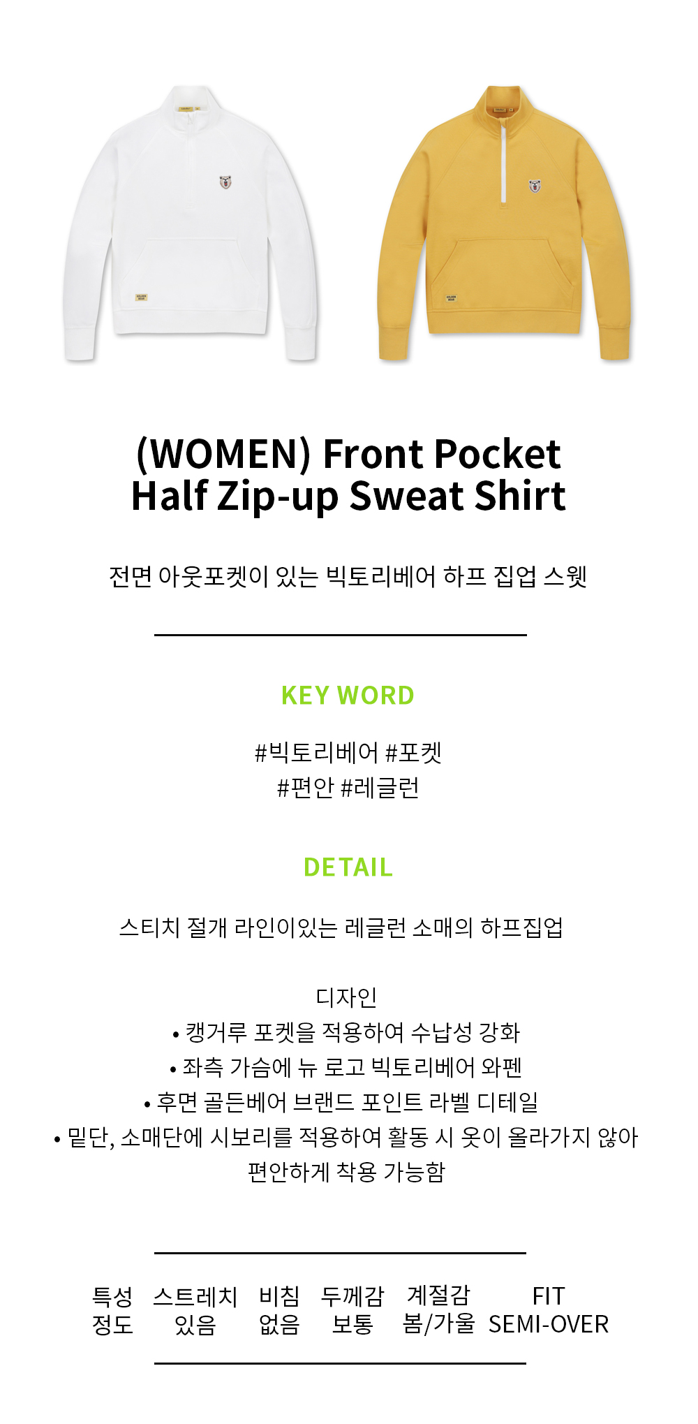 (WOMEN) Front Pocket Half Zip-up SweatShirt(Yellow)