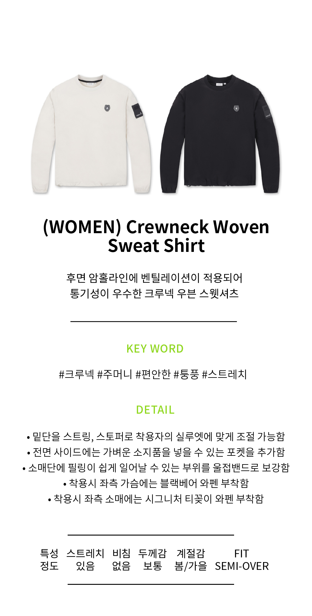(WOMEN) Crewneck Woven Sweat Shirt(Black)
