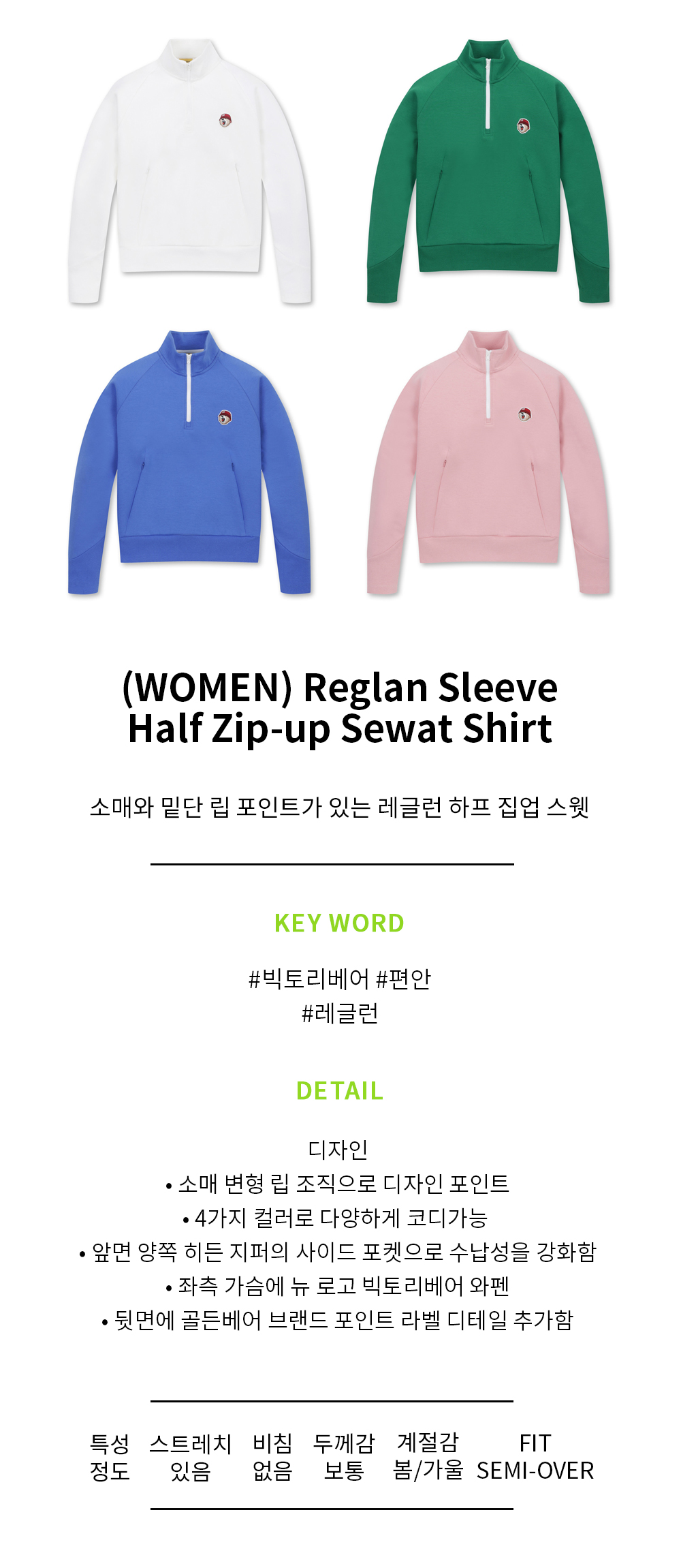 (WOMEN) Reglan Sleeve Half Zip-up SweatShirt(Pink)