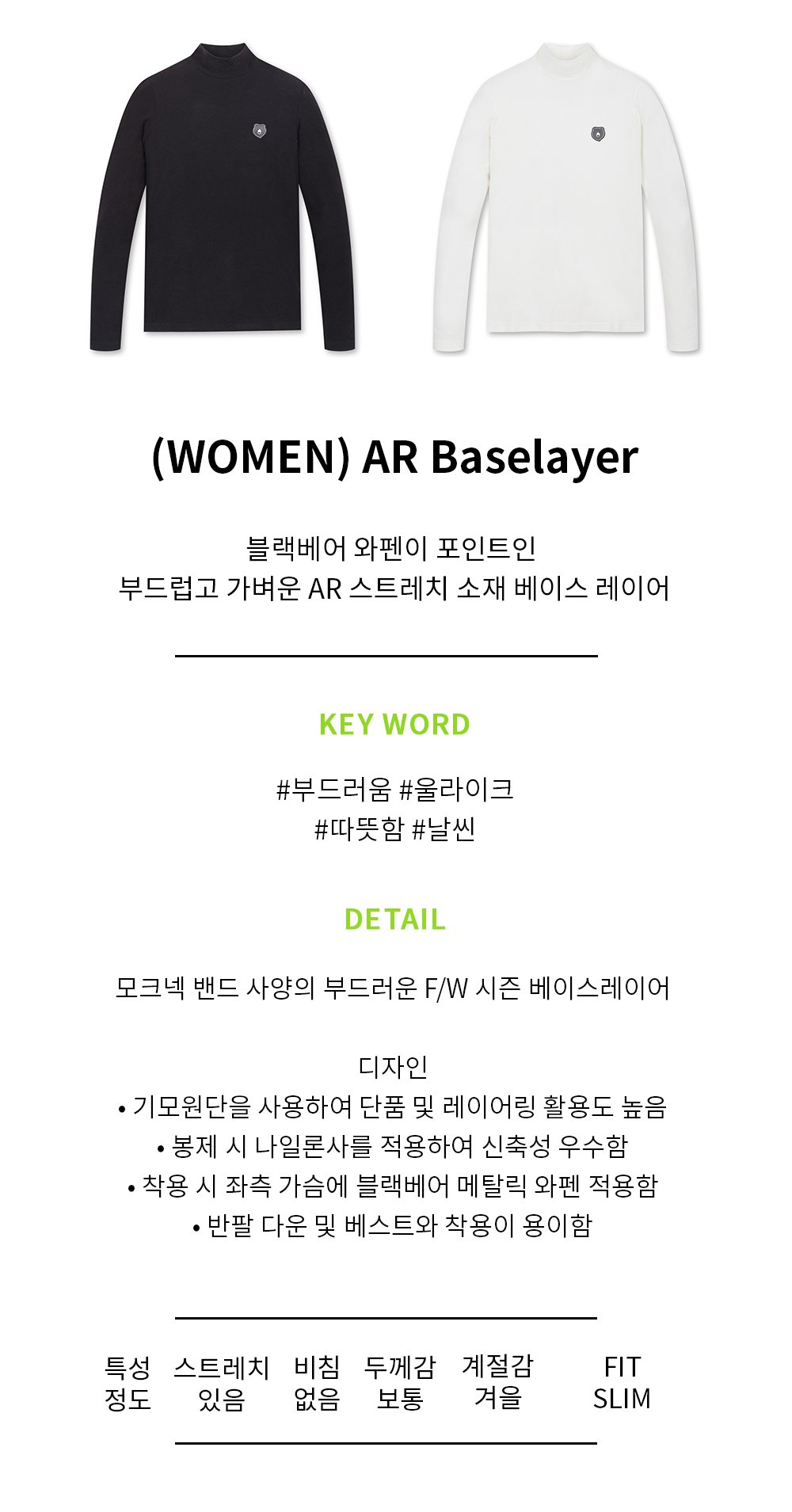| 소재 | [BKX] 겉감: 레이온 48% 아크릴 44% 폴리우레탄 8% (심지,보강재,상표,무늬,레이스,밴드 등 제외) [IVX] 겉감: 레이온 69% 아크릴 24% 폴리우레탄 7% (심지,보강재,상표,무늬,레이스,밴드 등 제외) |