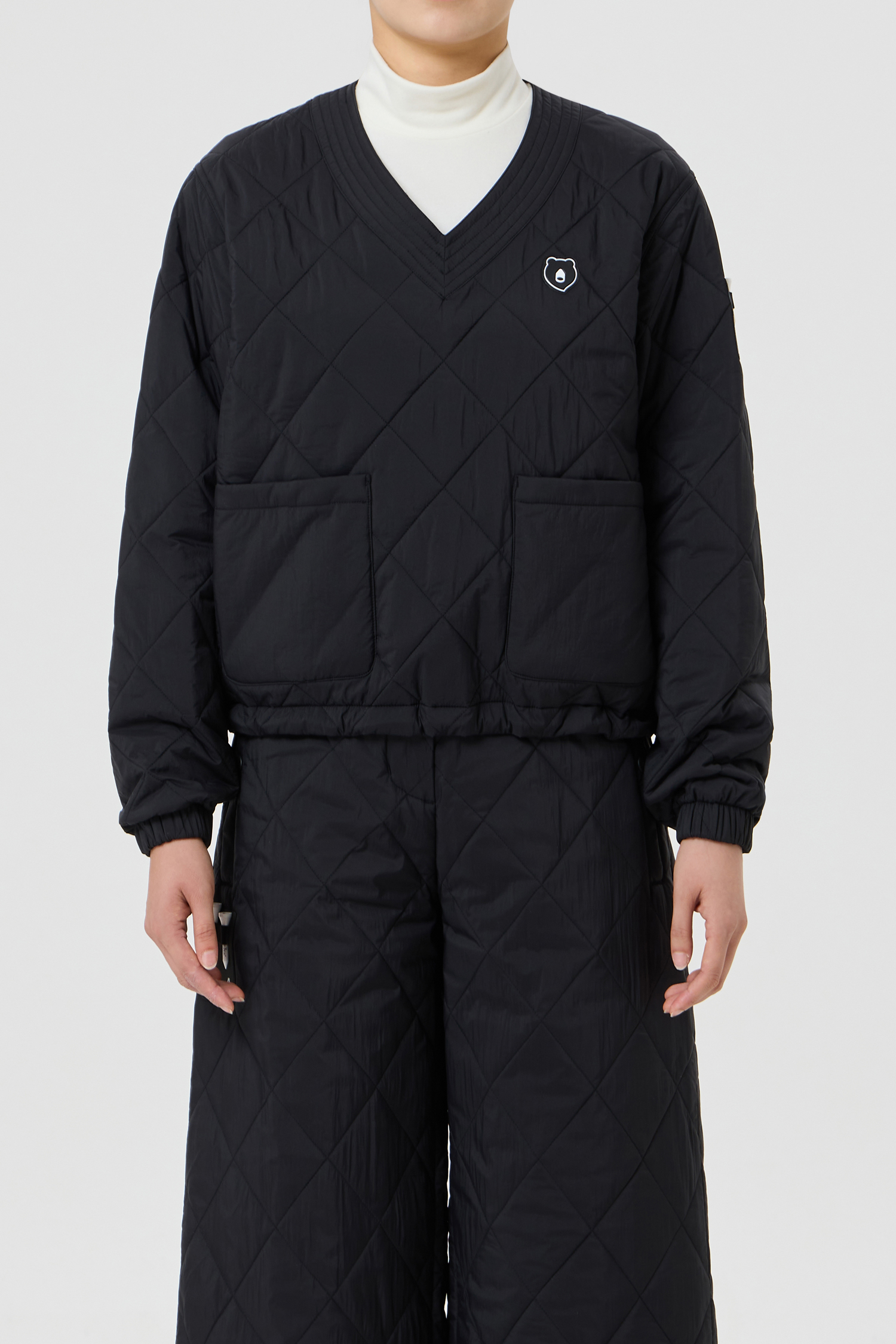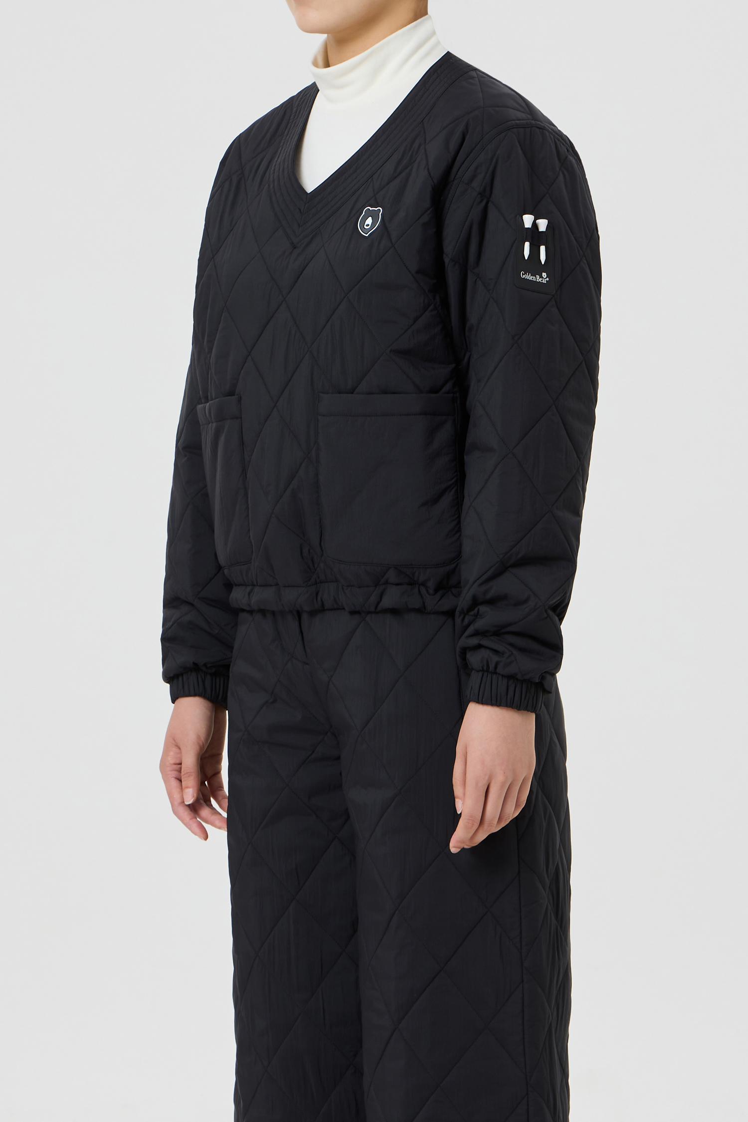 (WOMEN) Quilted V-neck SweatShirt(Black)