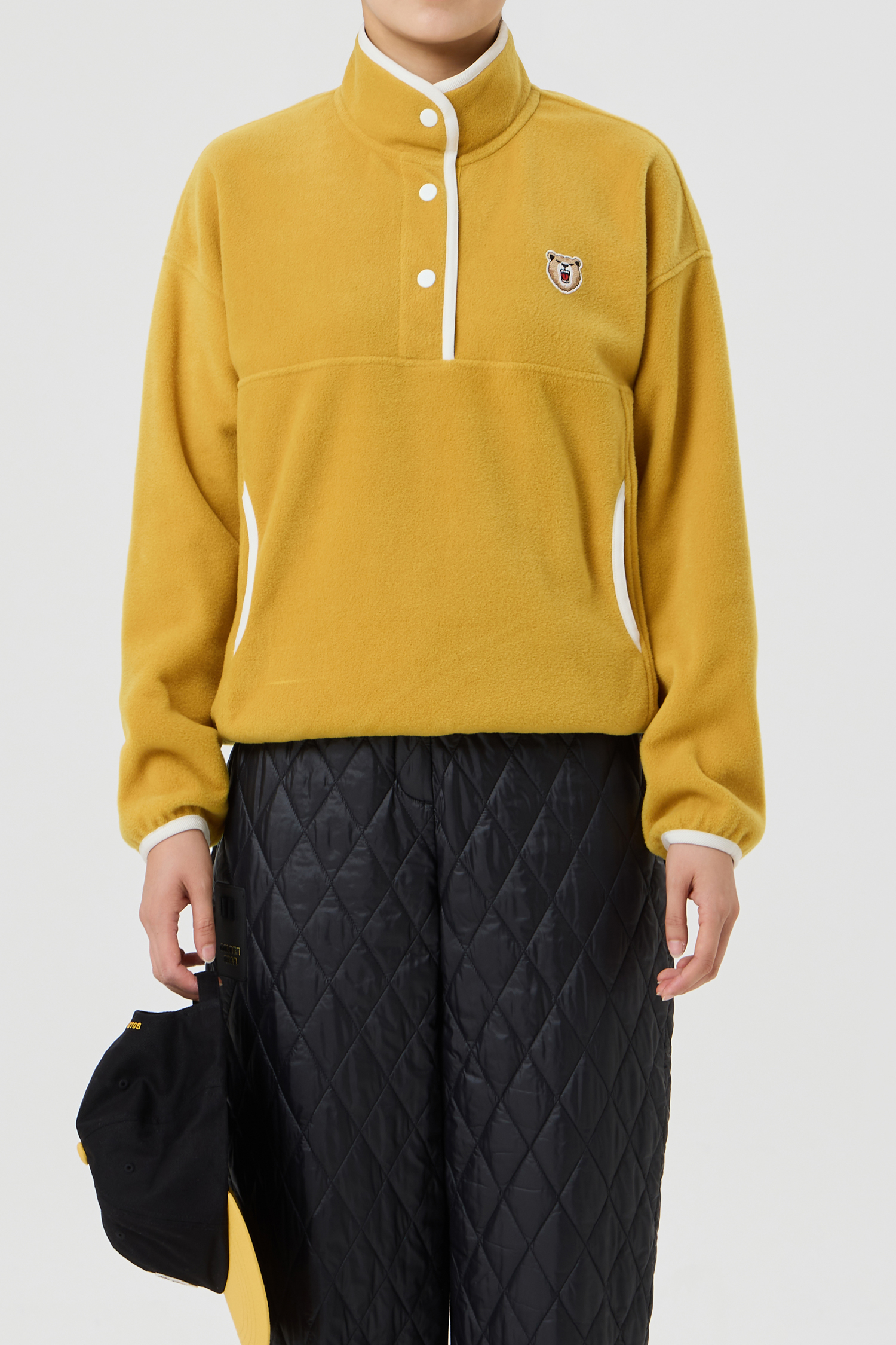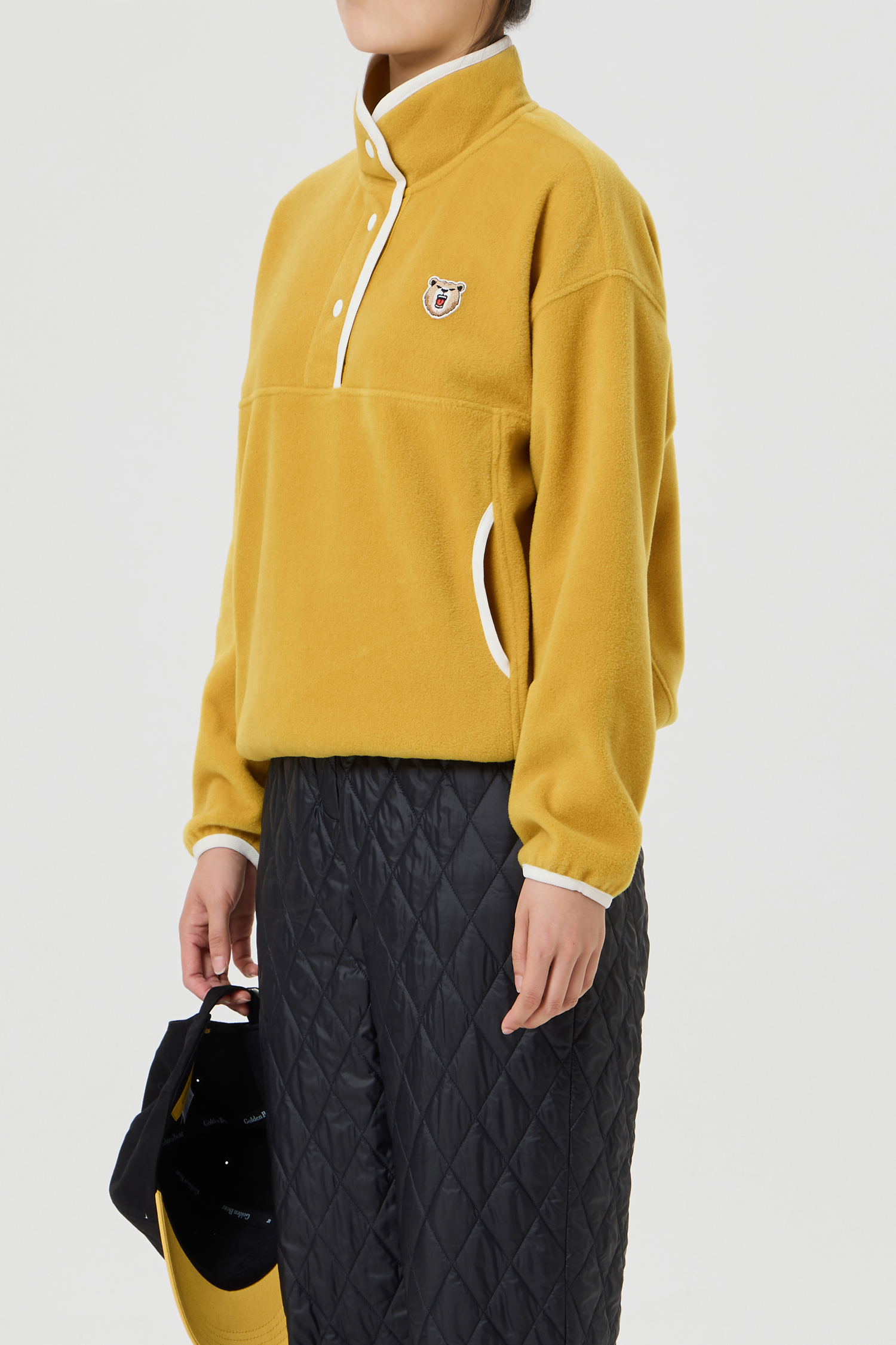 (WOMEN) Button Neck Fleece SweatShirt(Yellow)