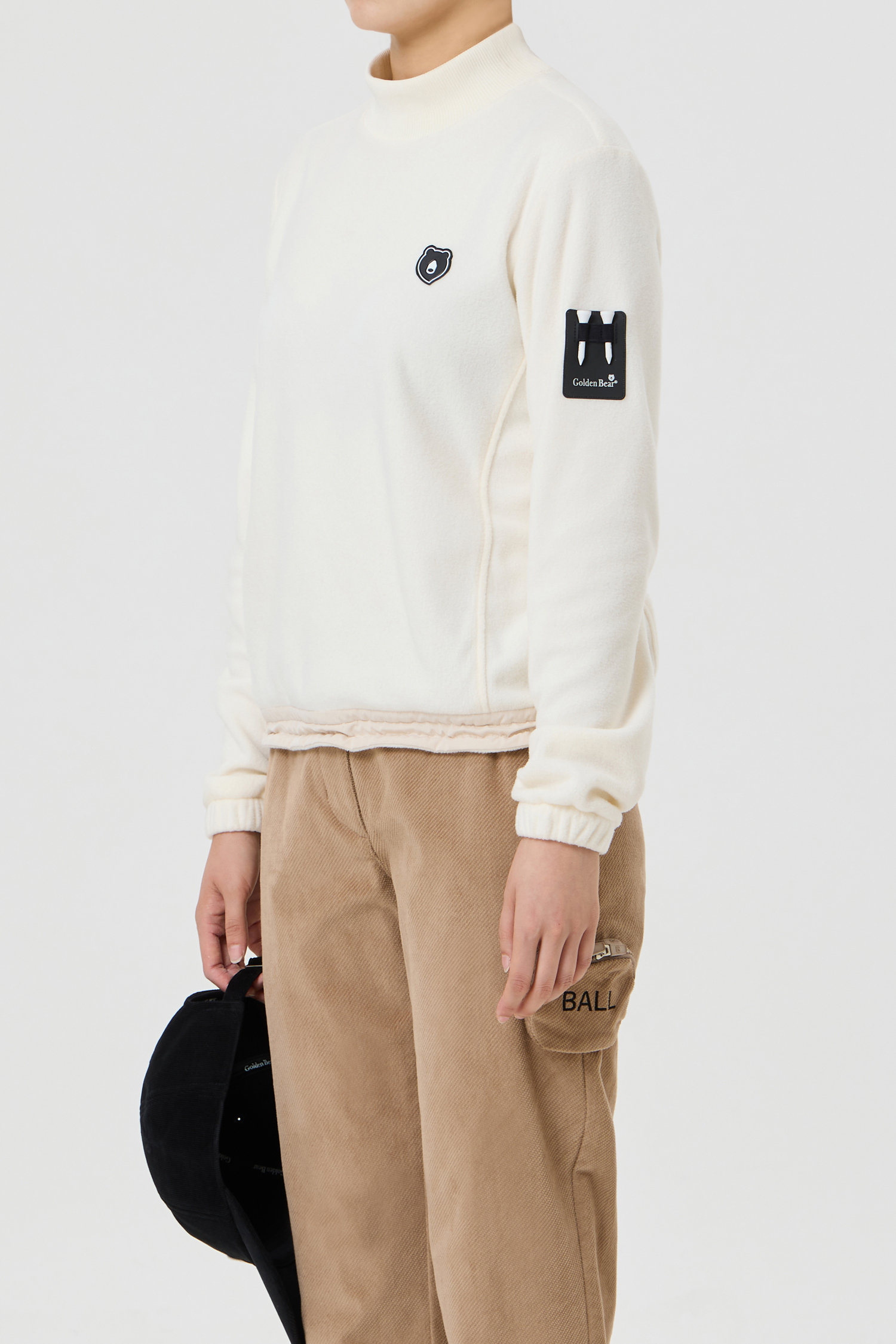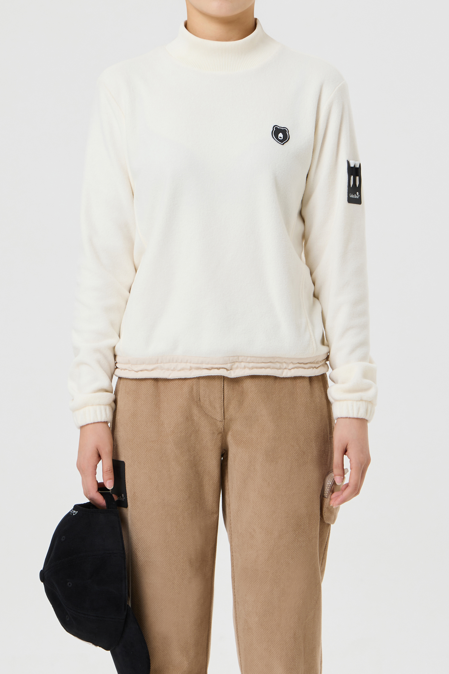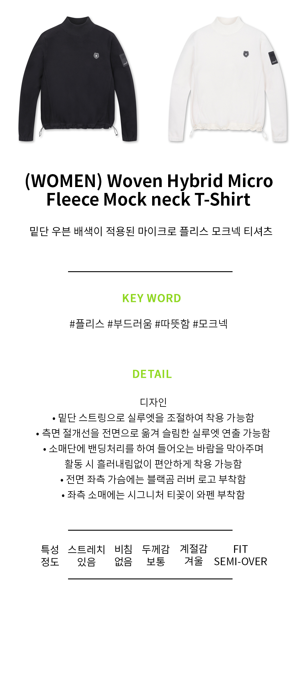 (WOMEN) Woven Hybrid Micro Fleece Mock neck T-Shirt(Ivory)