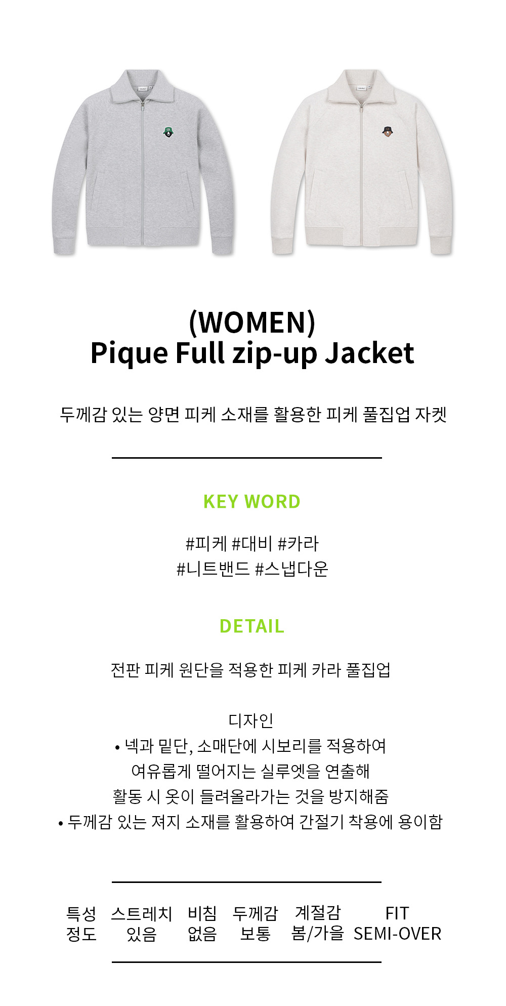 (WOMEN) Pique Full zip-up Jacket(Ivory)