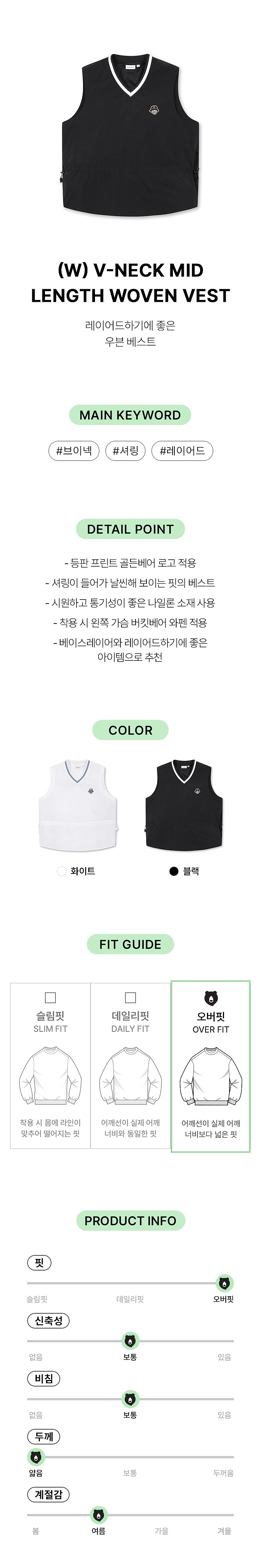(W) V-neck Mid length Woven Vest