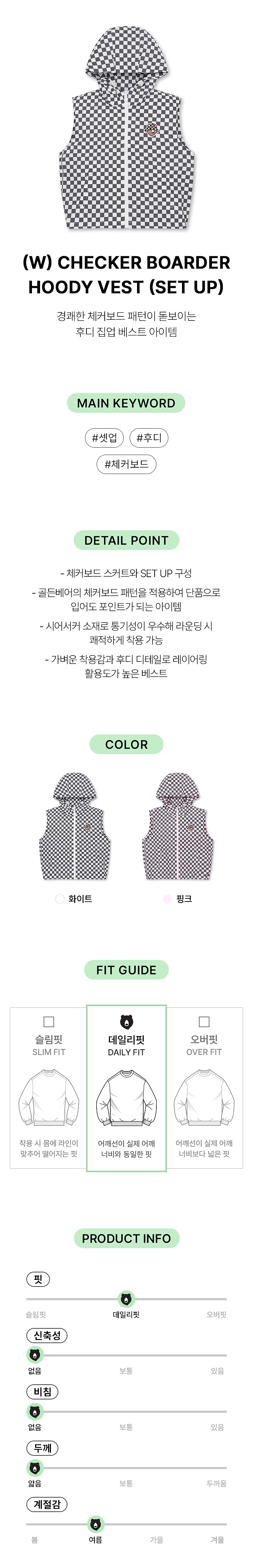 (W) Checker Boarder Hoody Vest Set Up
