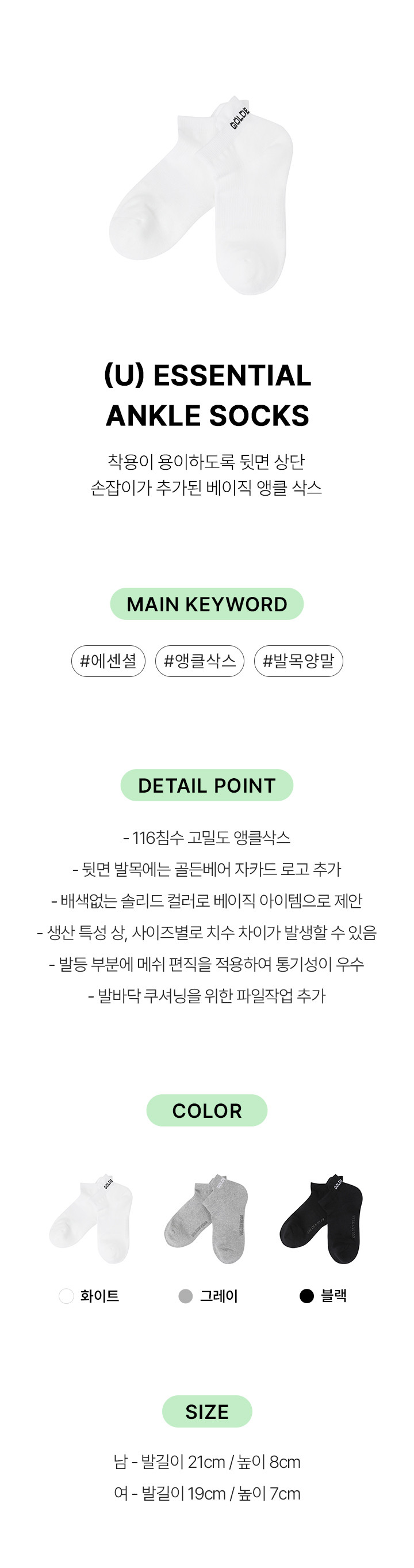 | 소재 | 겉감: 면 71% 나일론 19% 폴리우레탄 6% 폴리에스터 4% |