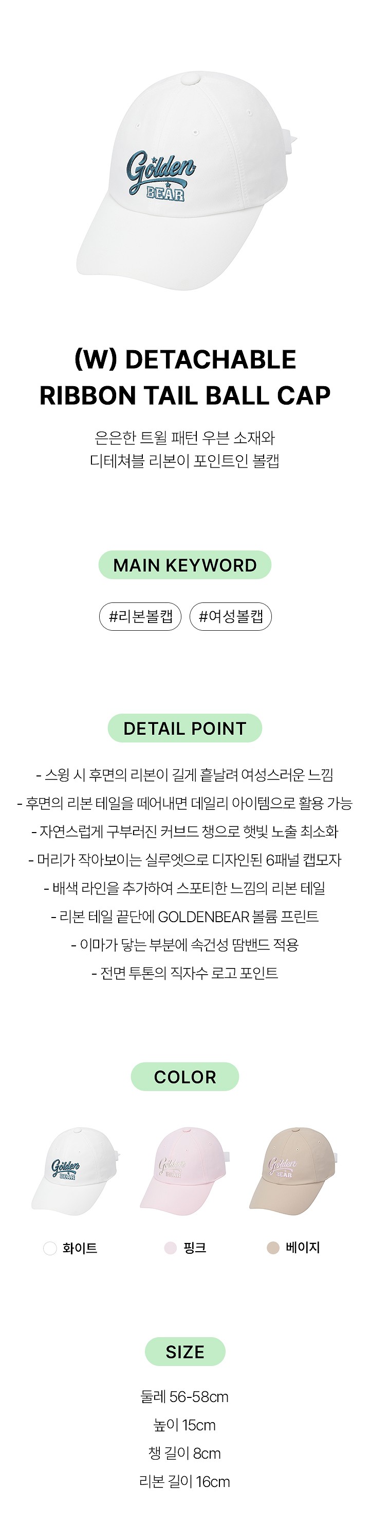 (W) Detachable Ribbon Tail Ball Cap