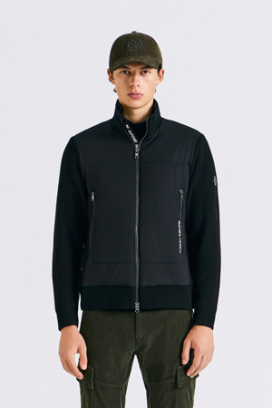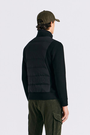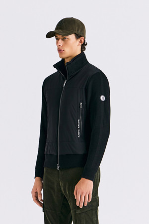 몸 판과 스트레치성이 뛰어난 스웨터 소재가 등판과
