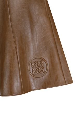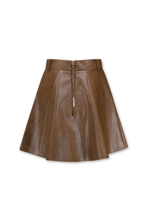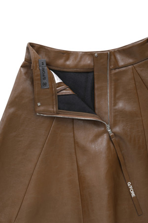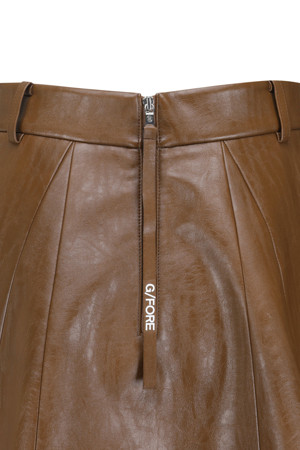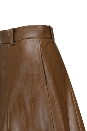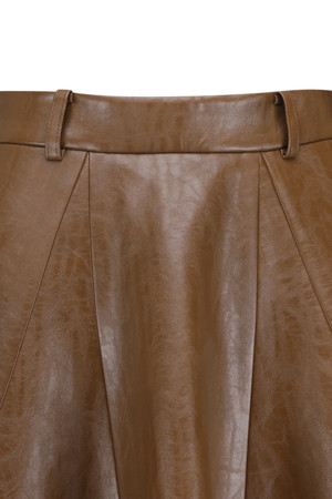 - 비건 레더 플리츠 플레어 스커트.- 고급스러운 광택감이 돋보이는