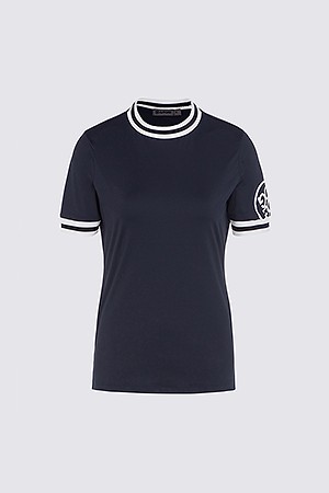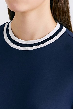 - 넥 라인과 슬리브에 배색 RIB 소재를