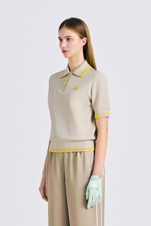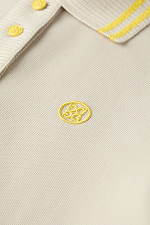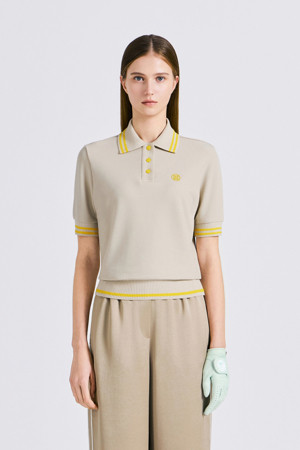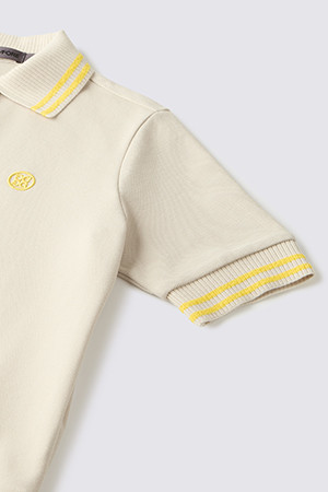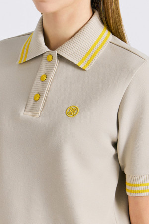 반팔 폴로 티셔츠로 슬리브단과 밑단에 배색