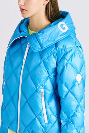 - 높게 올라오는 폴더블 후드로 디자인 포인트를 가지며,