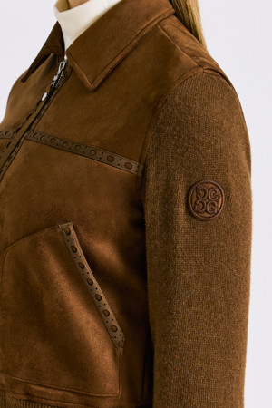 - 몸 판 스웨이드, 소매 니트로 설계되어 활동성과 우수한 보온성을
