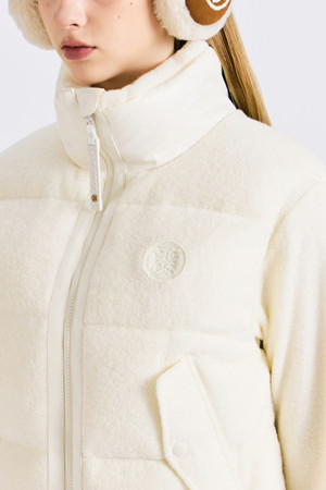 - 부드러운 부클 원단에 고급스러운 광택의 카라 배색으로